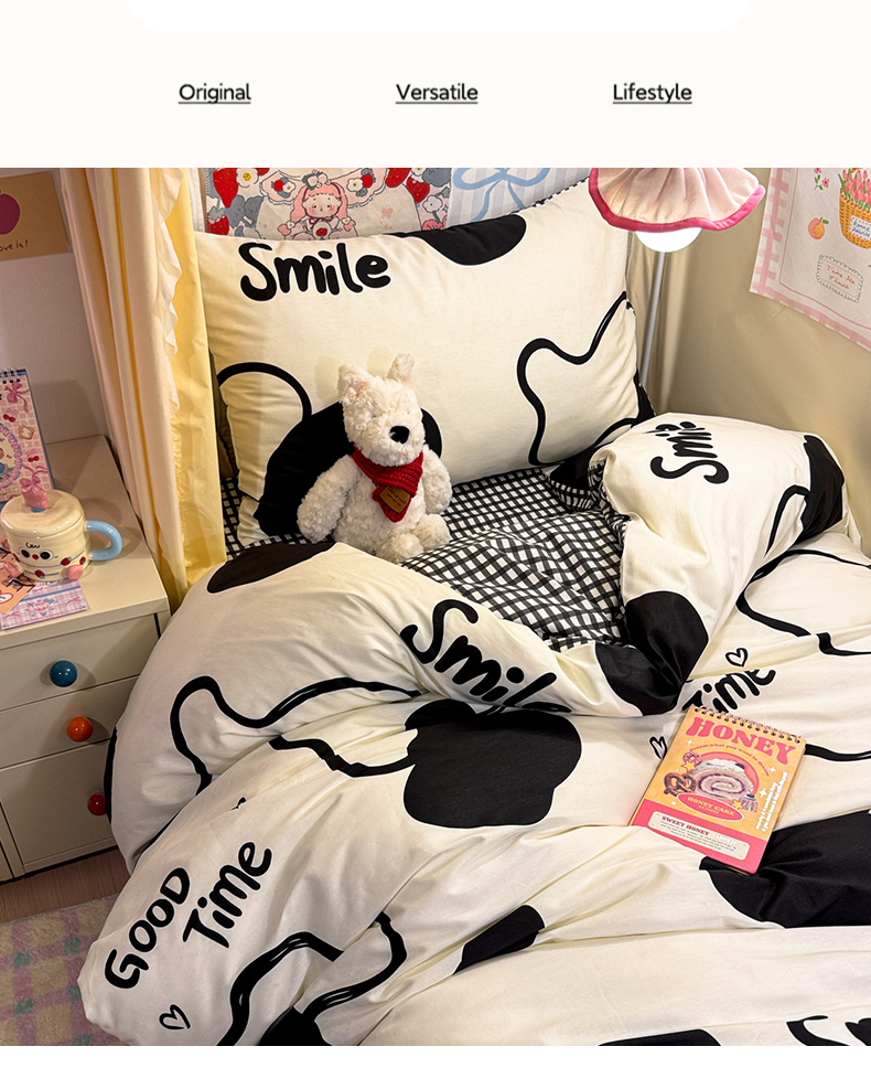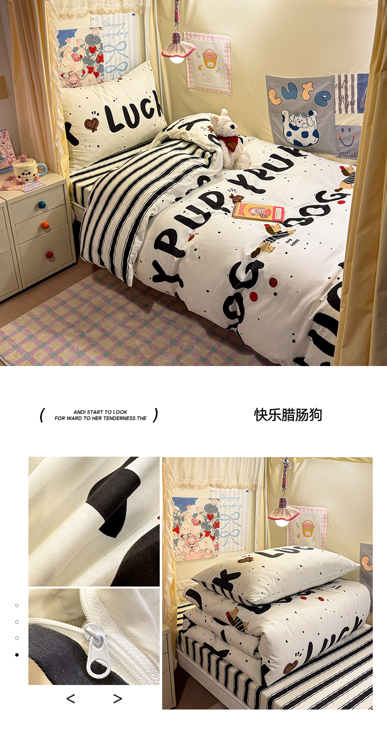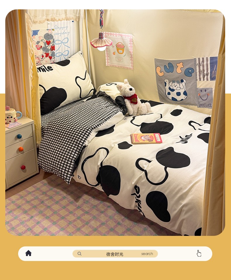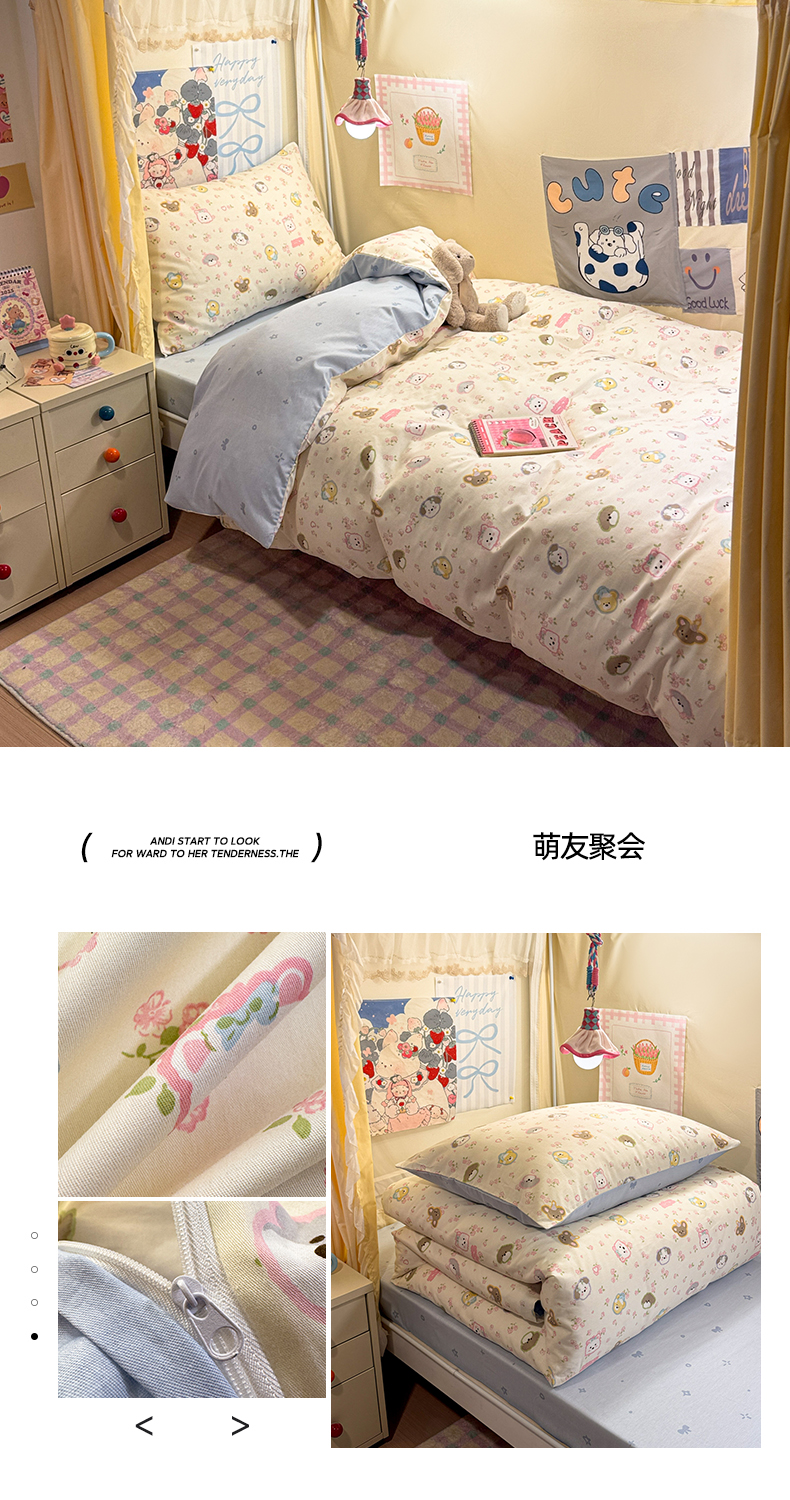 自然醒卡通花卉简约学生床套件40支全棉斜纹三件套ins宿舍床单床笠四件套JY