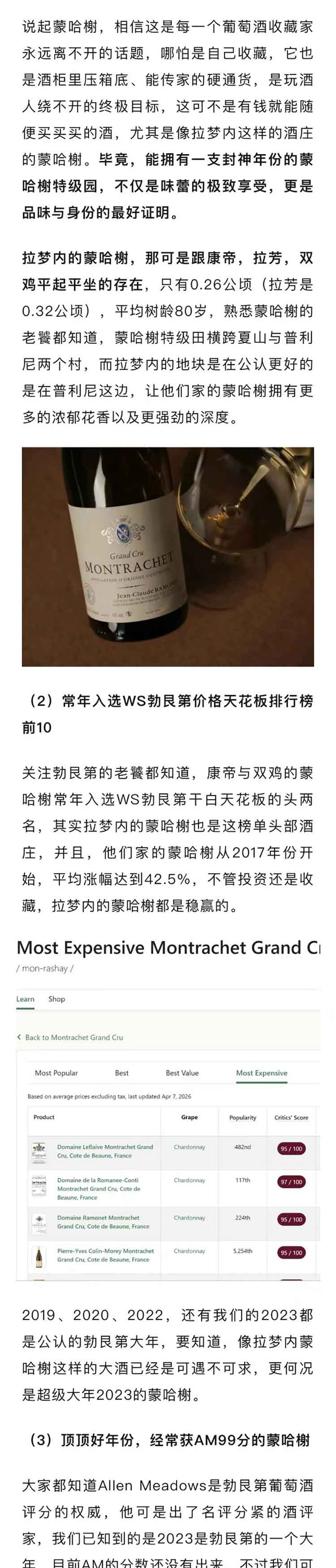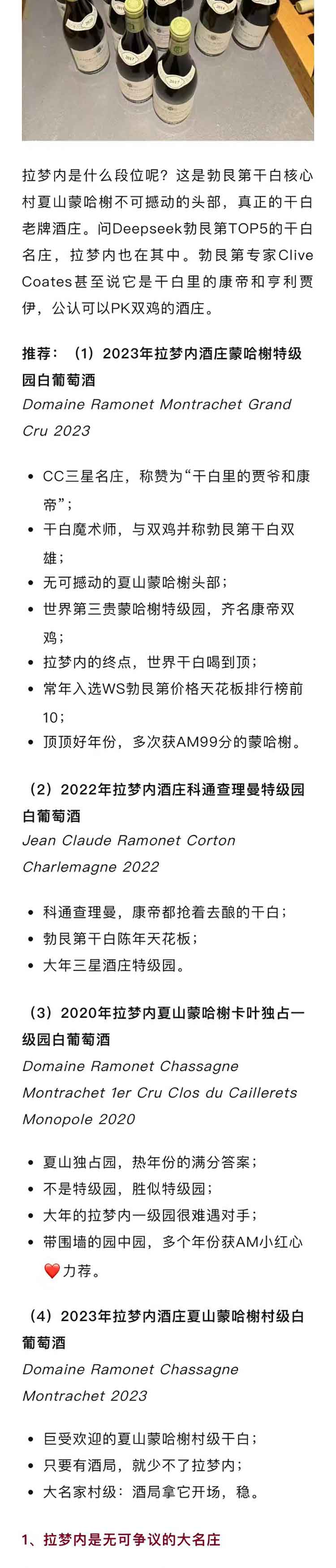 法国勃艮第2020年拉梦内酒庄夏山蒙哈榭卡叶独占一级园干白葡萄酒