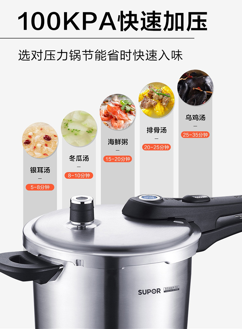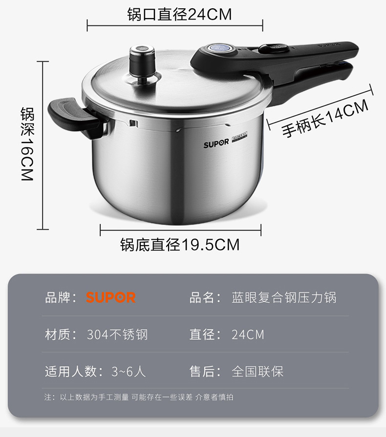 苏泊尔 蓝眼复合钢压力快锅5.5L高压锅 YW223LB1