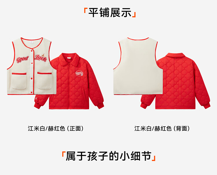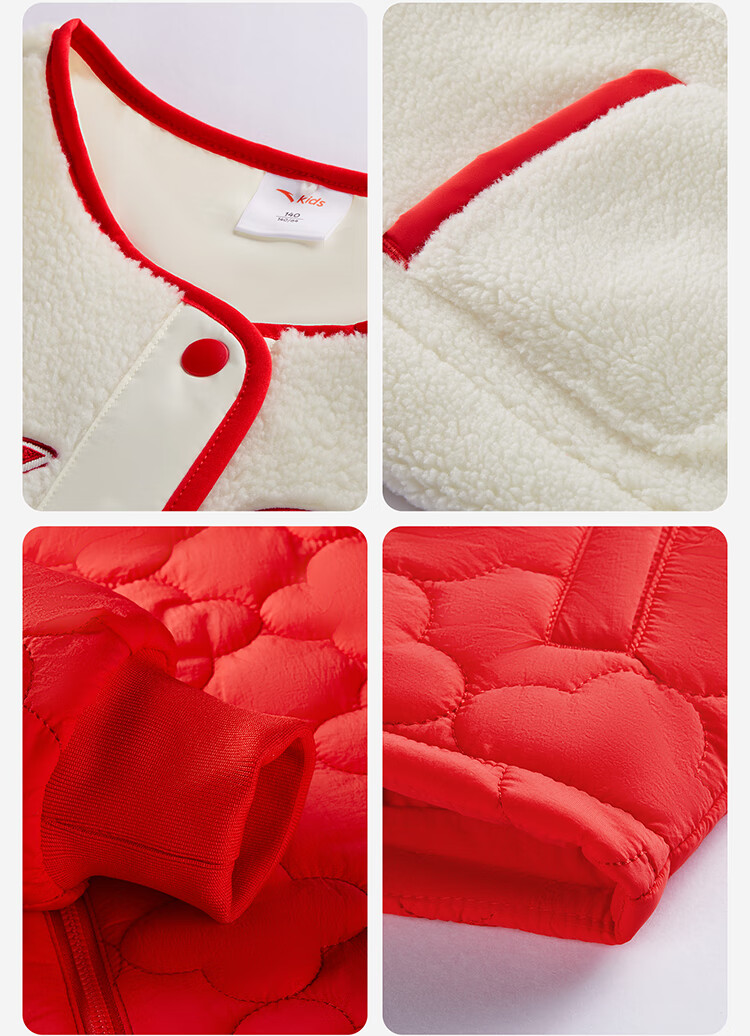 安踏儿童外套女大童2024冬季加绒保暖新年两件套上衣362518604