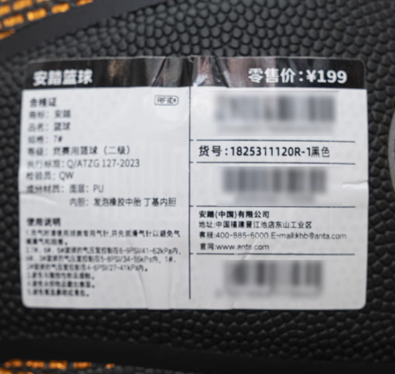 安踏灵丹篮球2025夏新款室内成人标准7号比赛篮球1825311120R