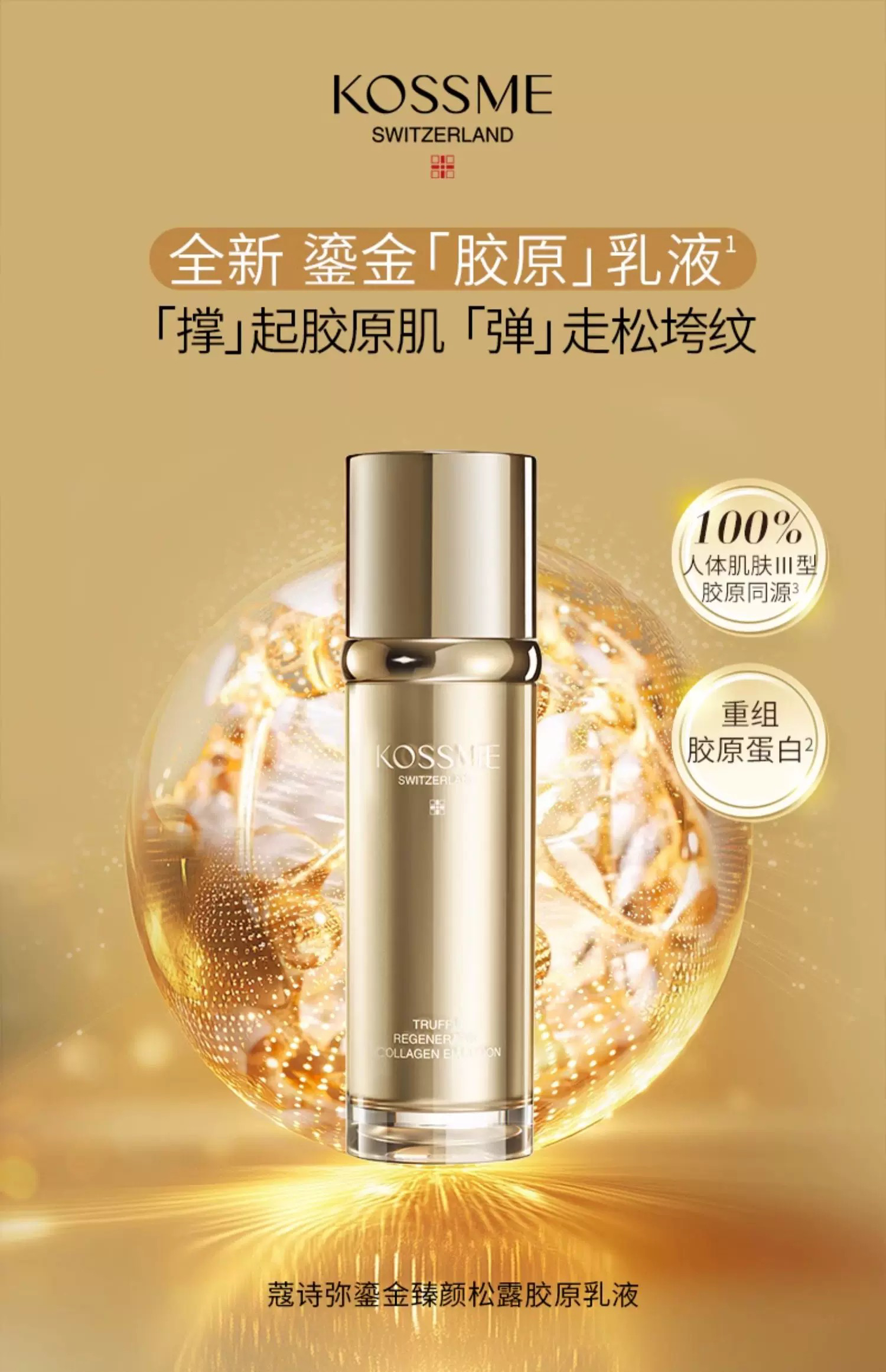 KOSSME蔻诗弥鎏金臻颜奢养胶原水乳套装(水125ml+乳80ml+面膜5片)