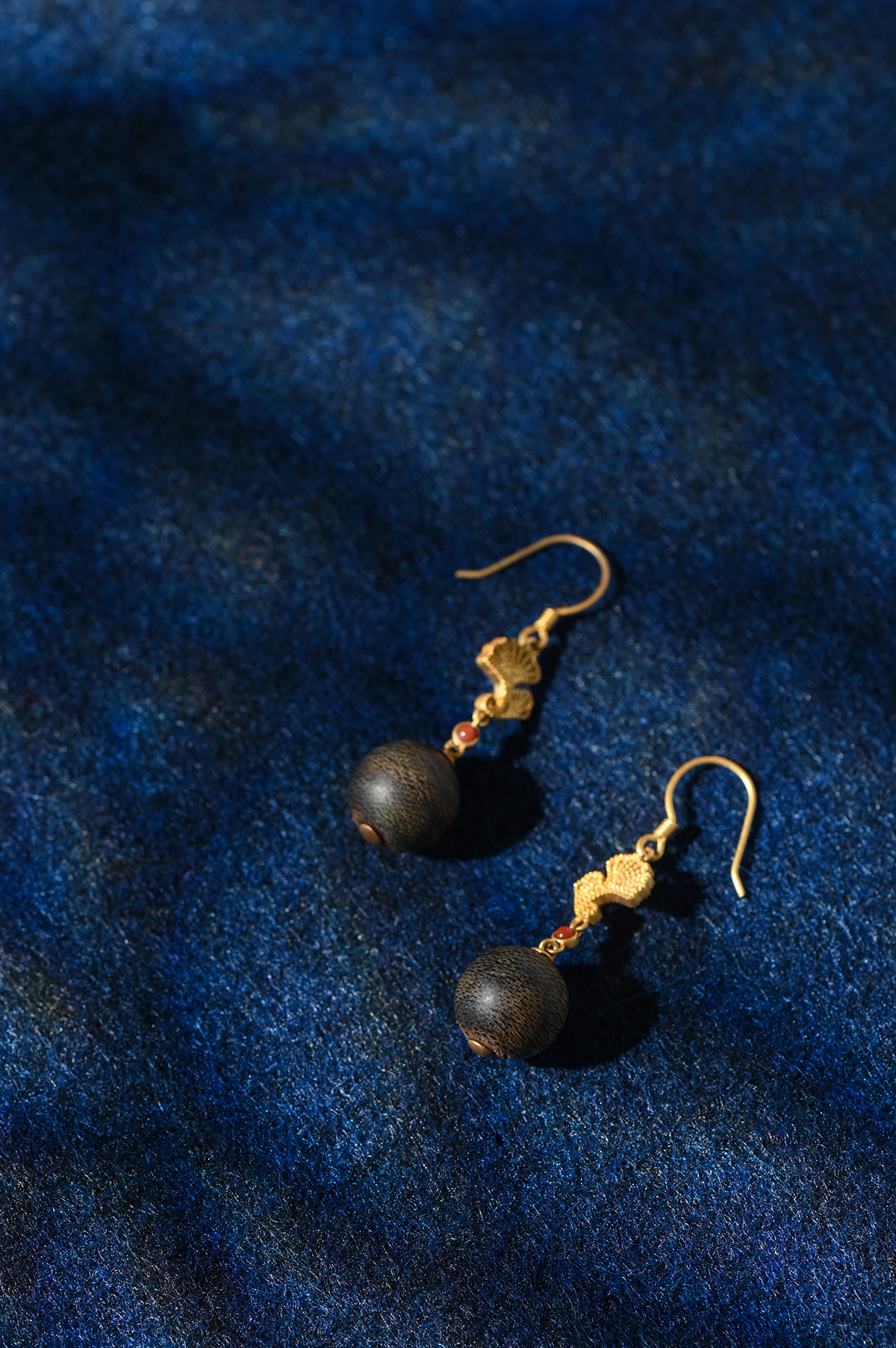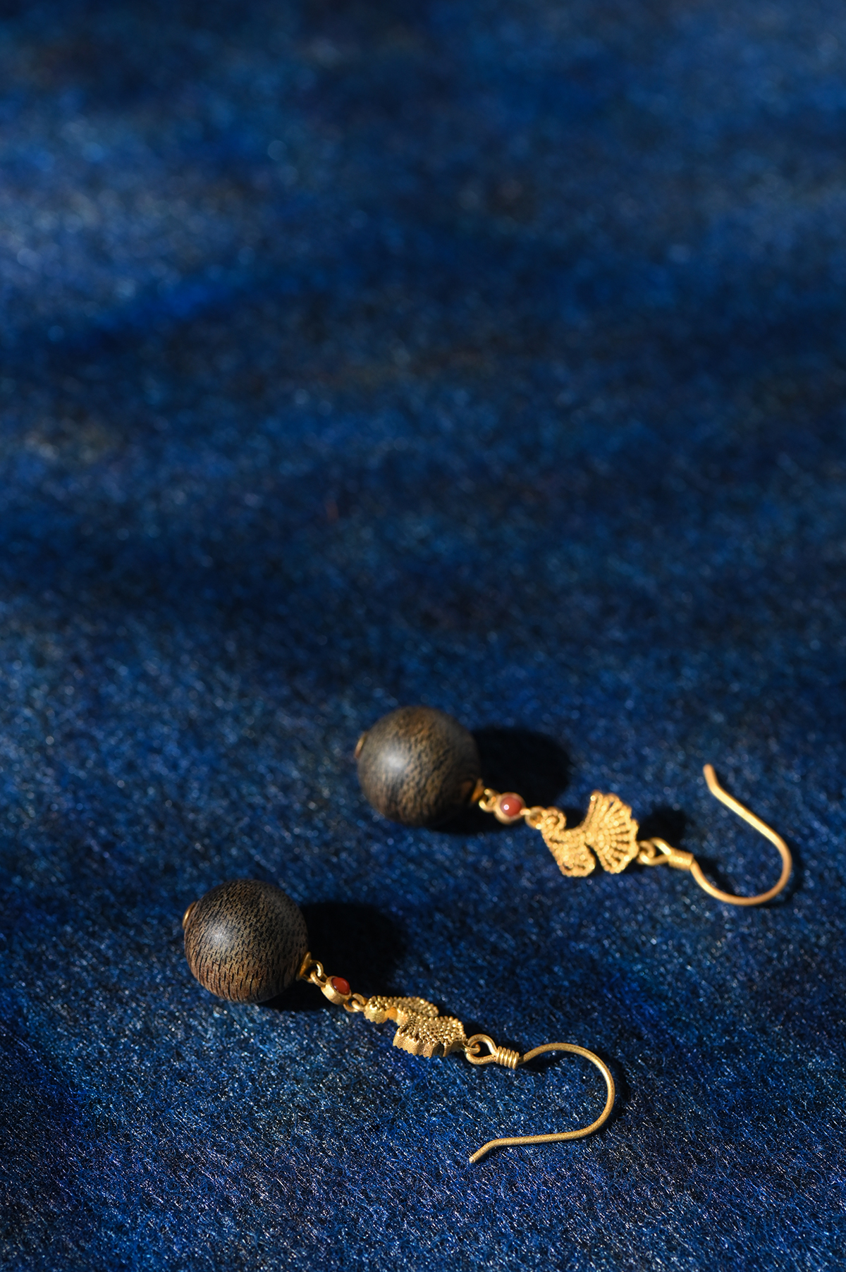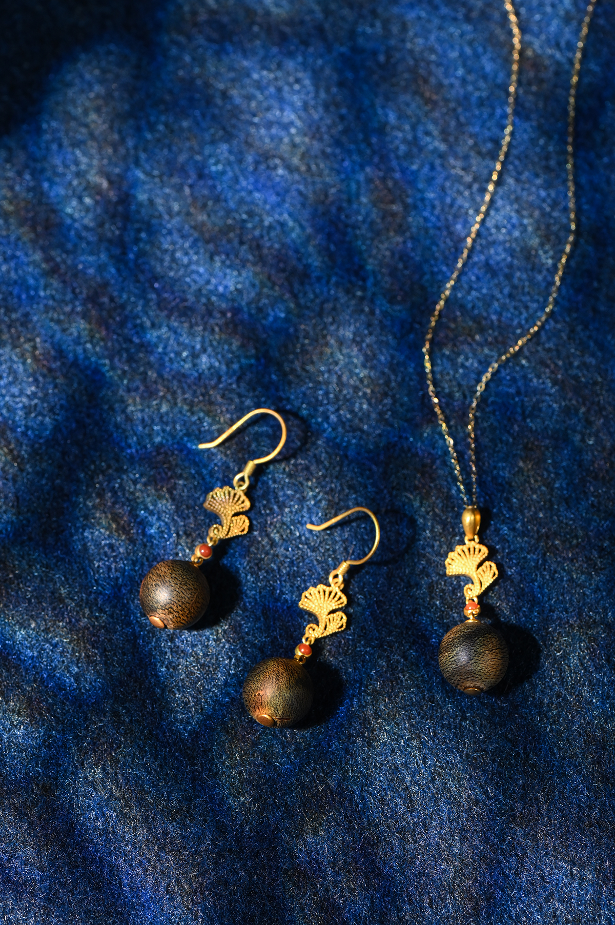 吊坠顶部的扇形/叶片状金属雕花,以及耳坠上类似建筑构件般精炼的几何结构,象征着“地方”,代表结构、秩序与人文匠心。