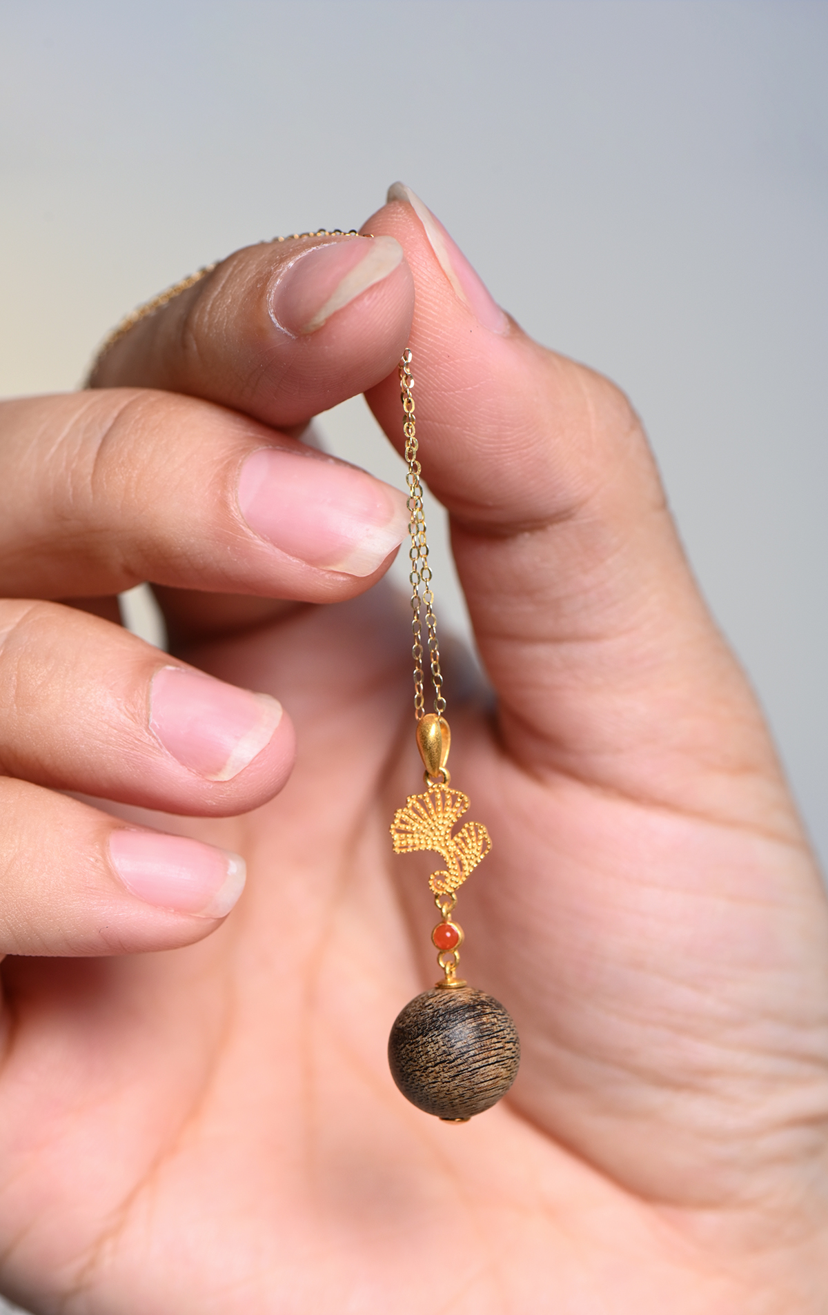 圆润的沉香单珠,象征着“天圆”,代表完满、流动与自然之气。