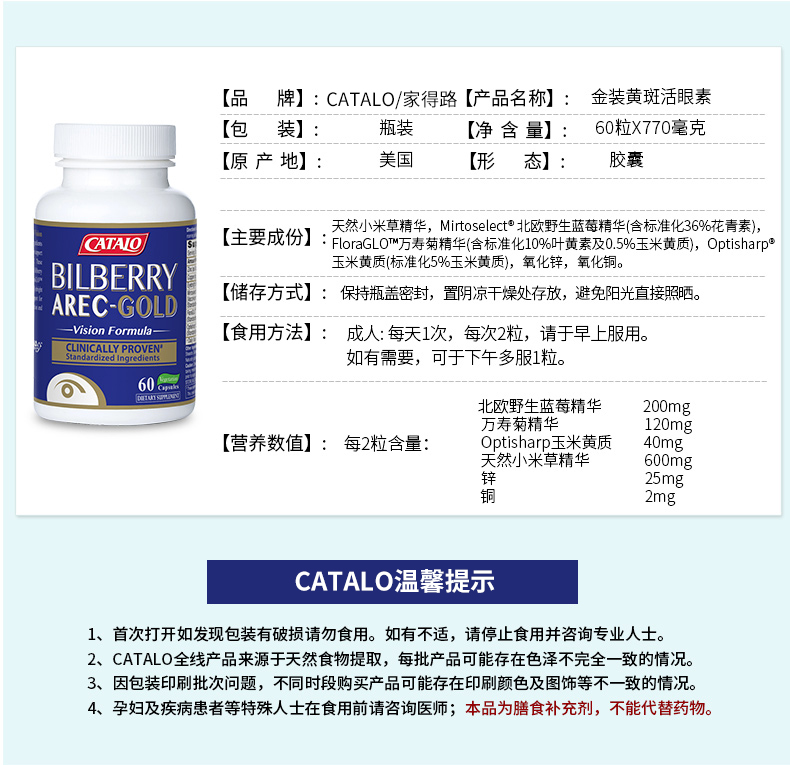 Catalo 家得路 金装黄斑活眼素 60粒【2026.8】