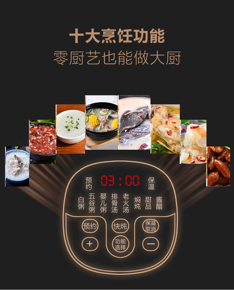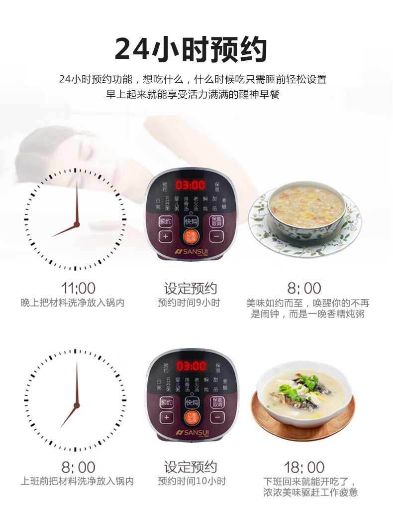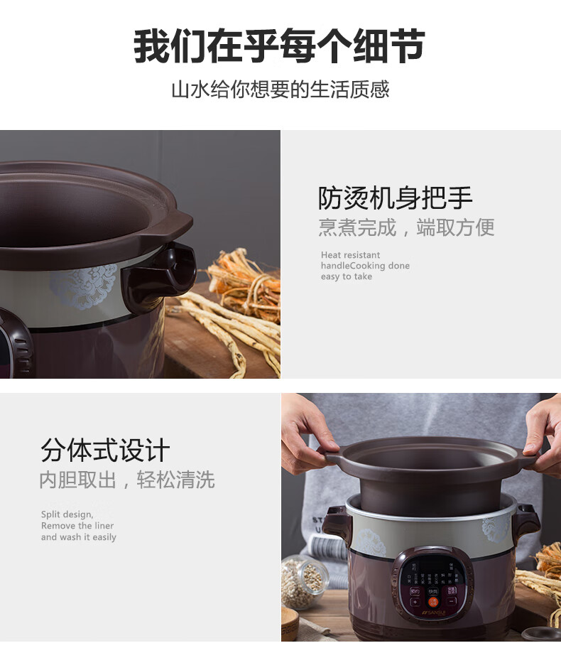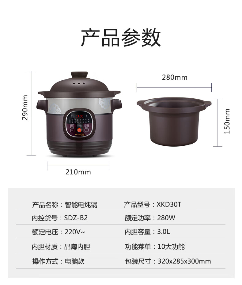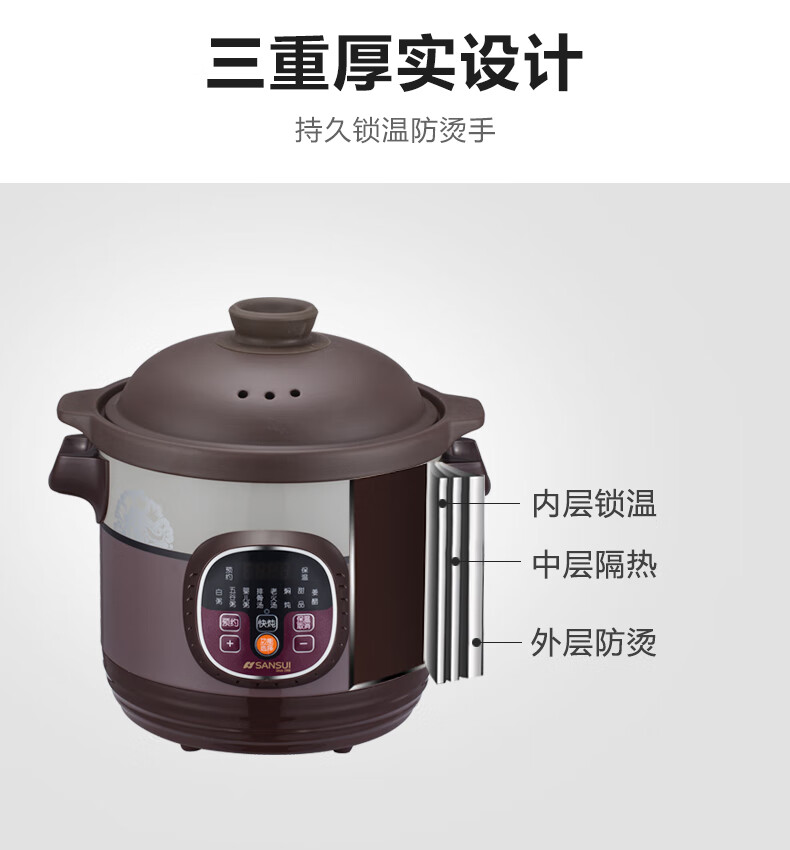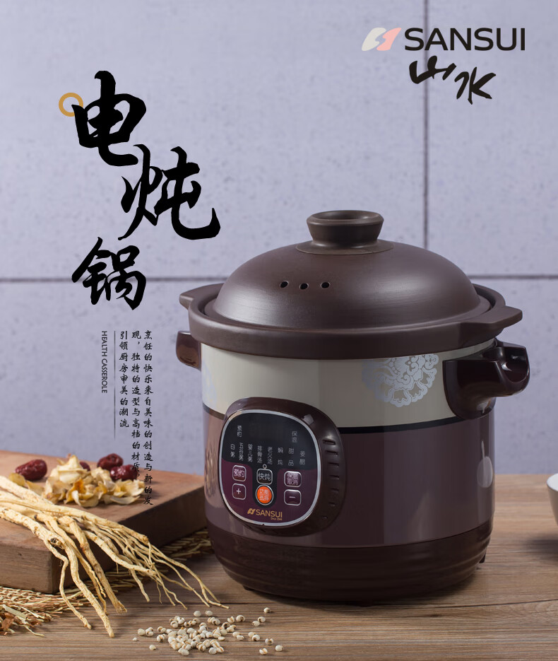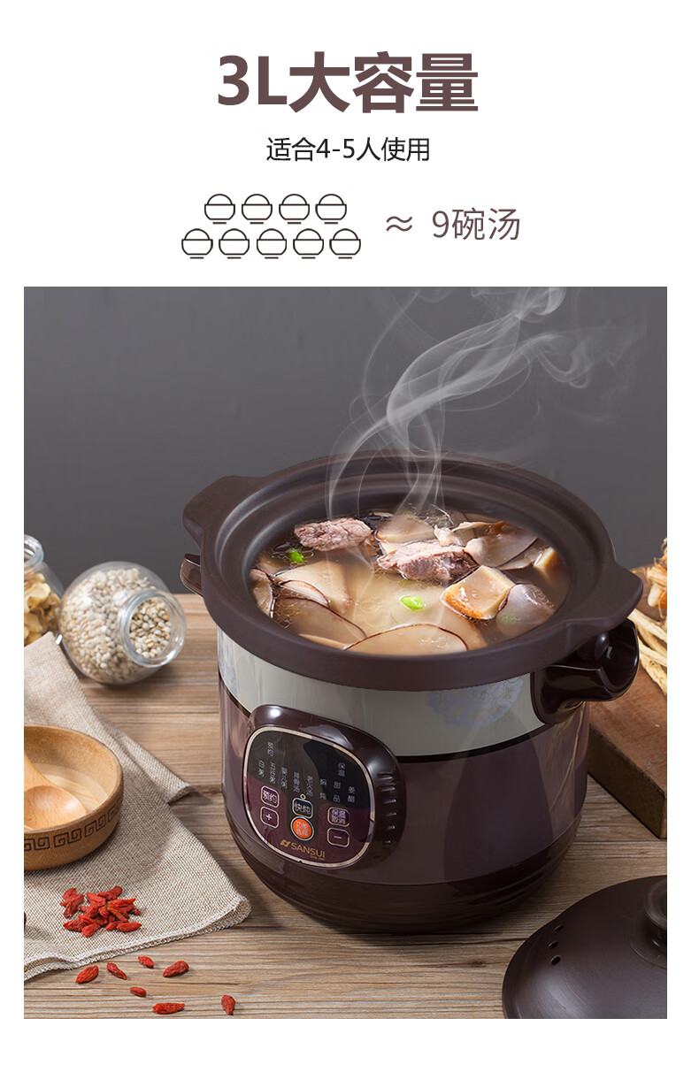 山水(SANSUI)电炖锅家用3L可预约智能紫砂电炖盅煲汤锅电脑款SDZ-B2