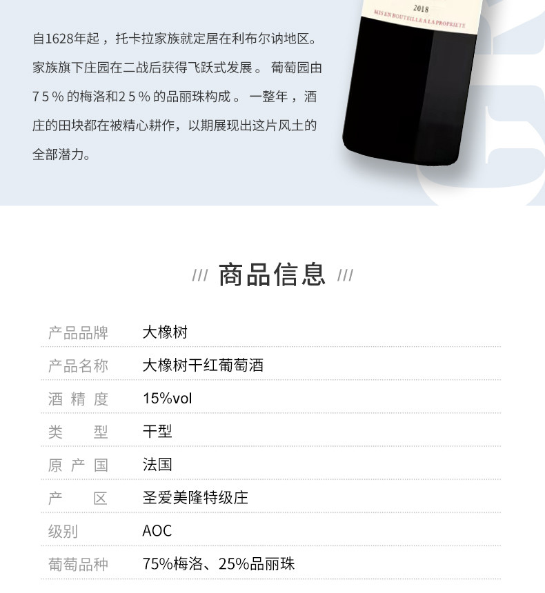 【6支装】法国进口 大橡树干红葡萄酒 15%vol750ml/瓶