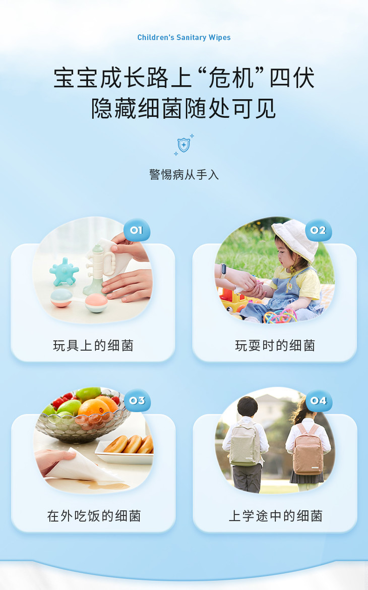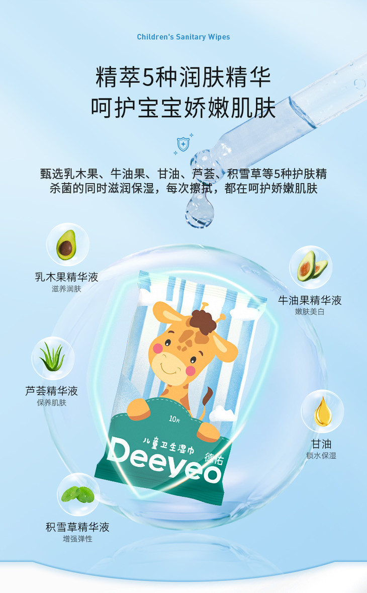 德佑儿童卫生湿巾纸小包便携随身装学生卫生家用湿巾10片10包/20包/30包