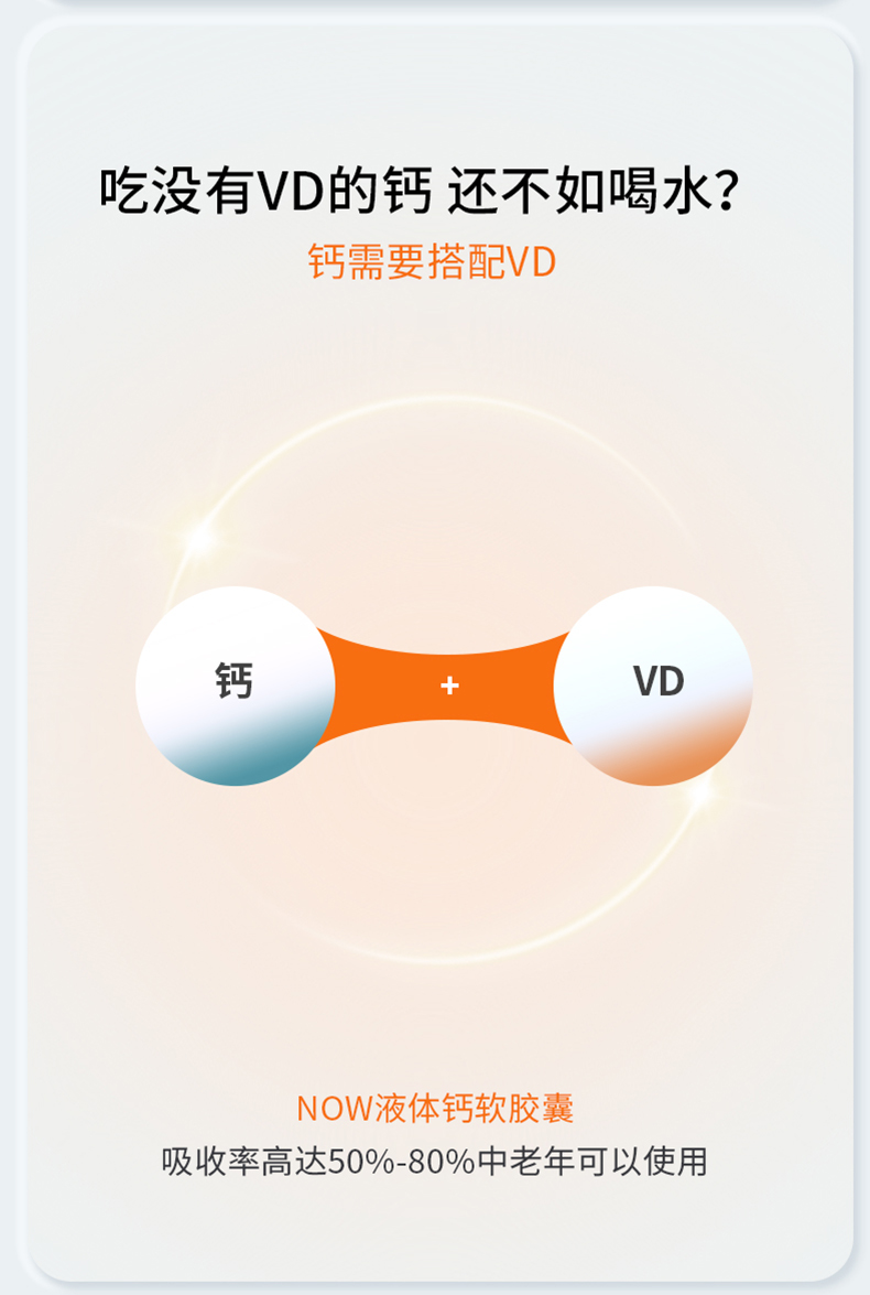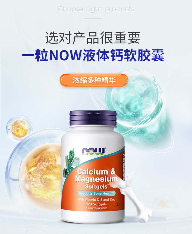 NOW诺奥液体钙软胶囊120粒钙镁锌vd3胶囊