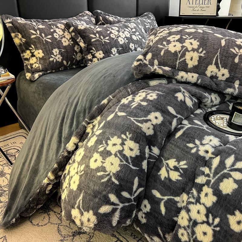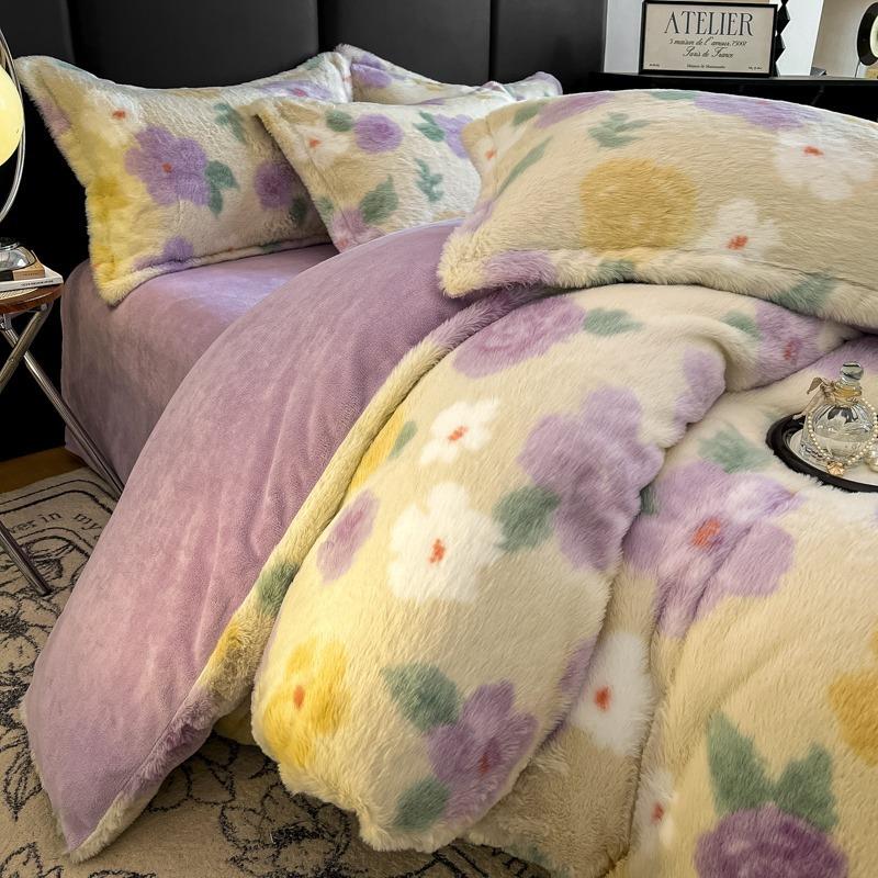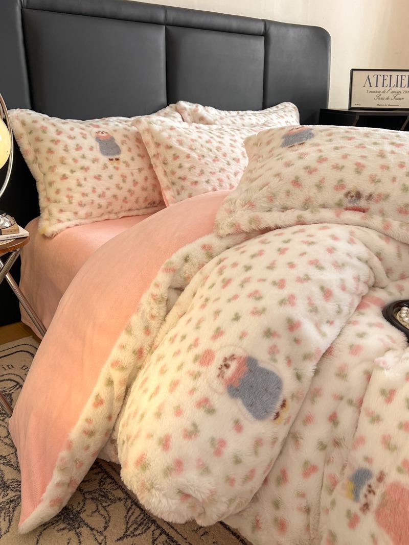 【豹纹加厚保暖兔毛绒四件套】牛奶绒床品套件可机洗床品批发跨境代发