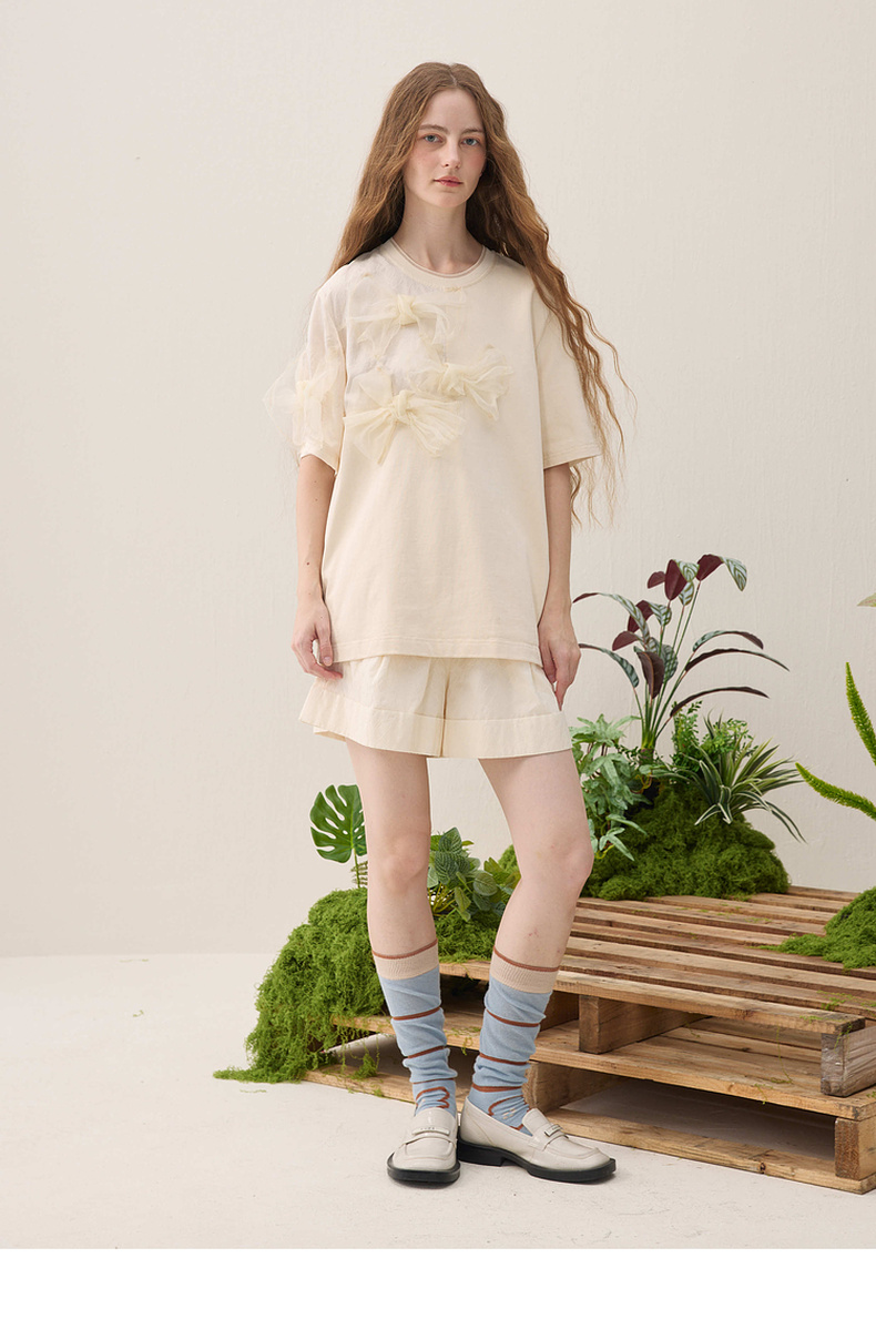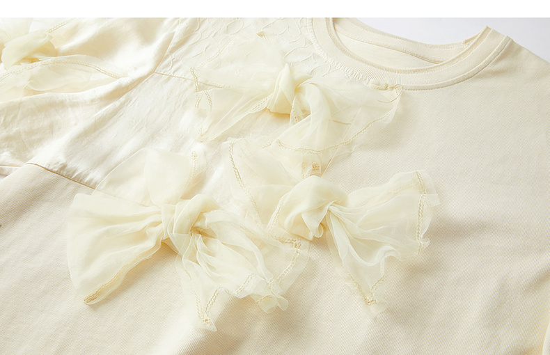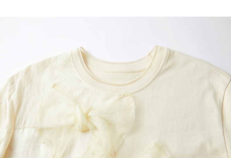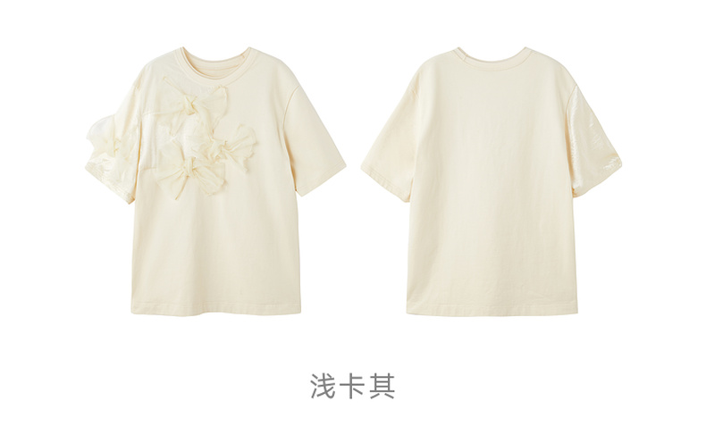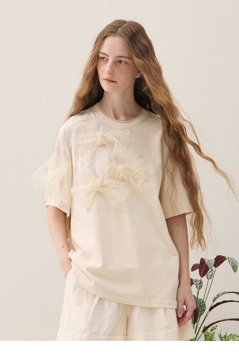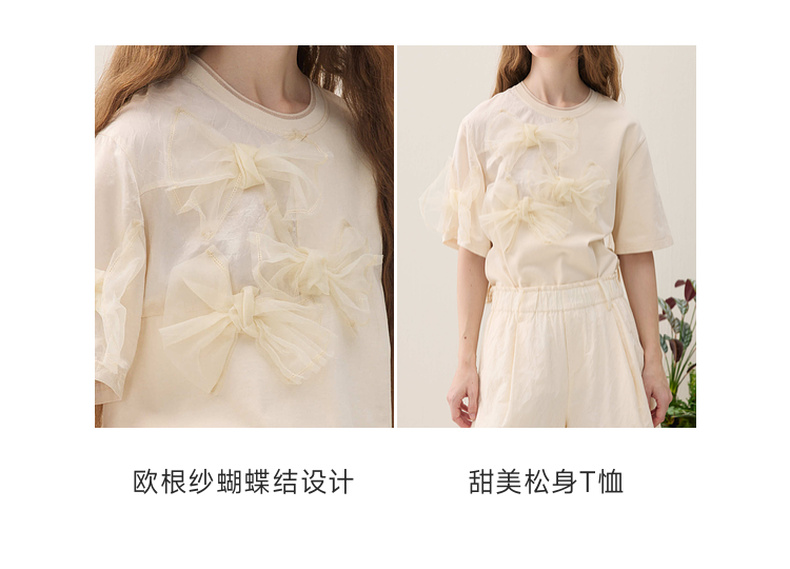 谜底宽松T恤短袖2026年春季新品欧根纱蝴蝶结甜美日常女261MT0246