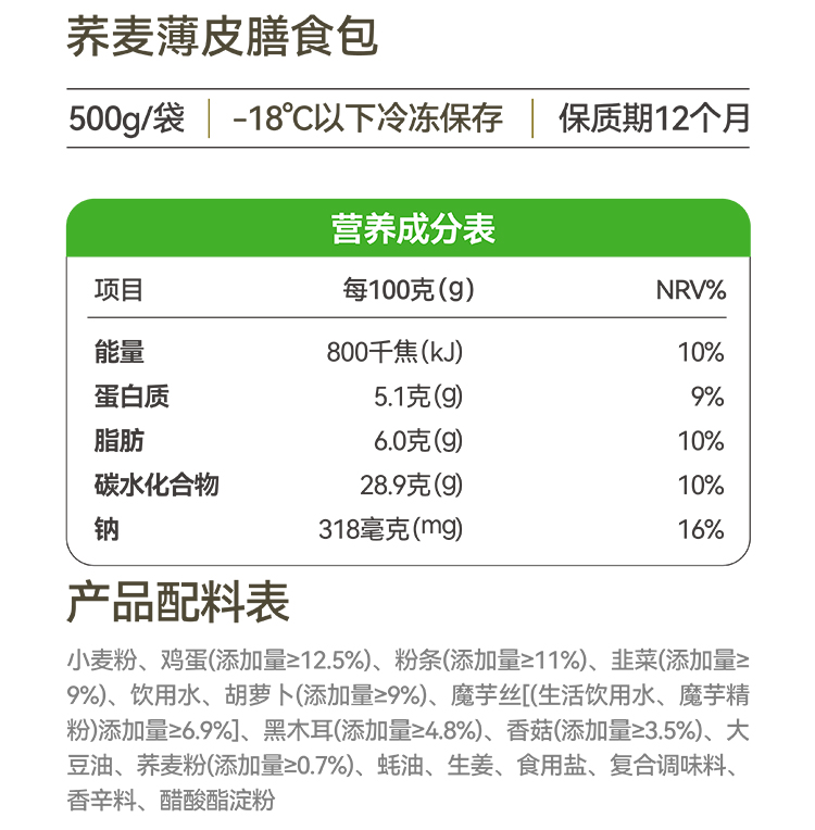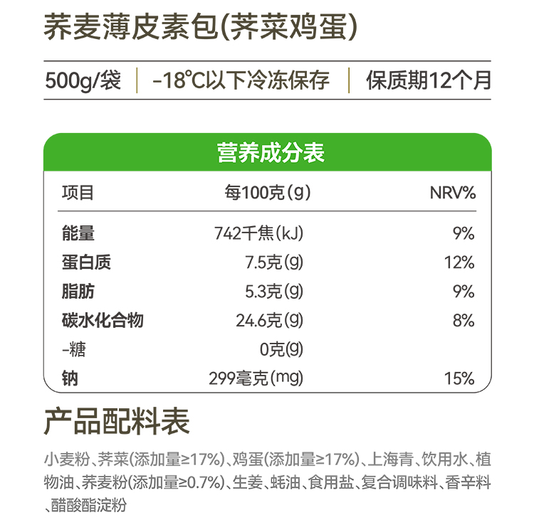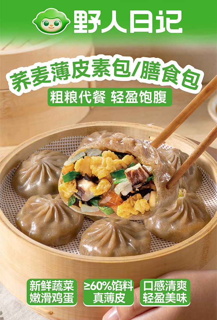 野人日记【专属】荞麦素馅薄皮膳食小笼包 500g/袋