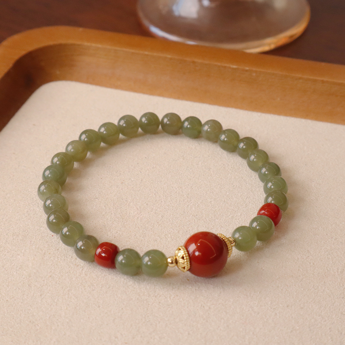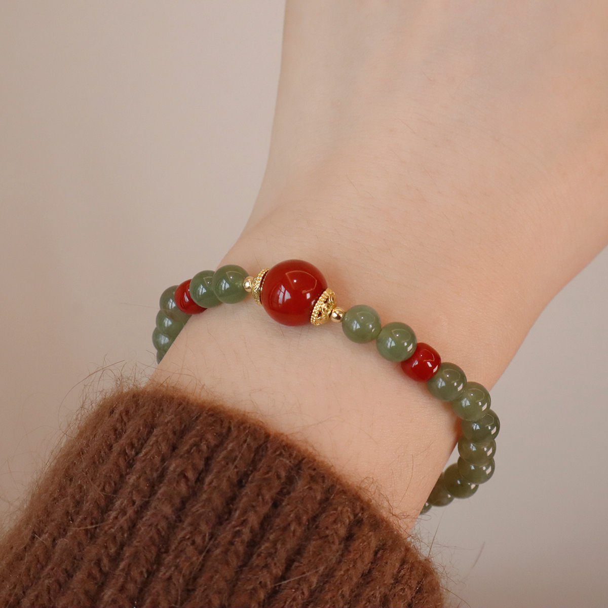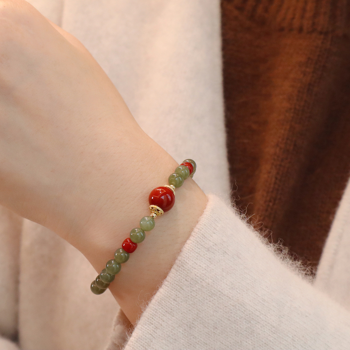 【品名】和田玉红玛瑙手串