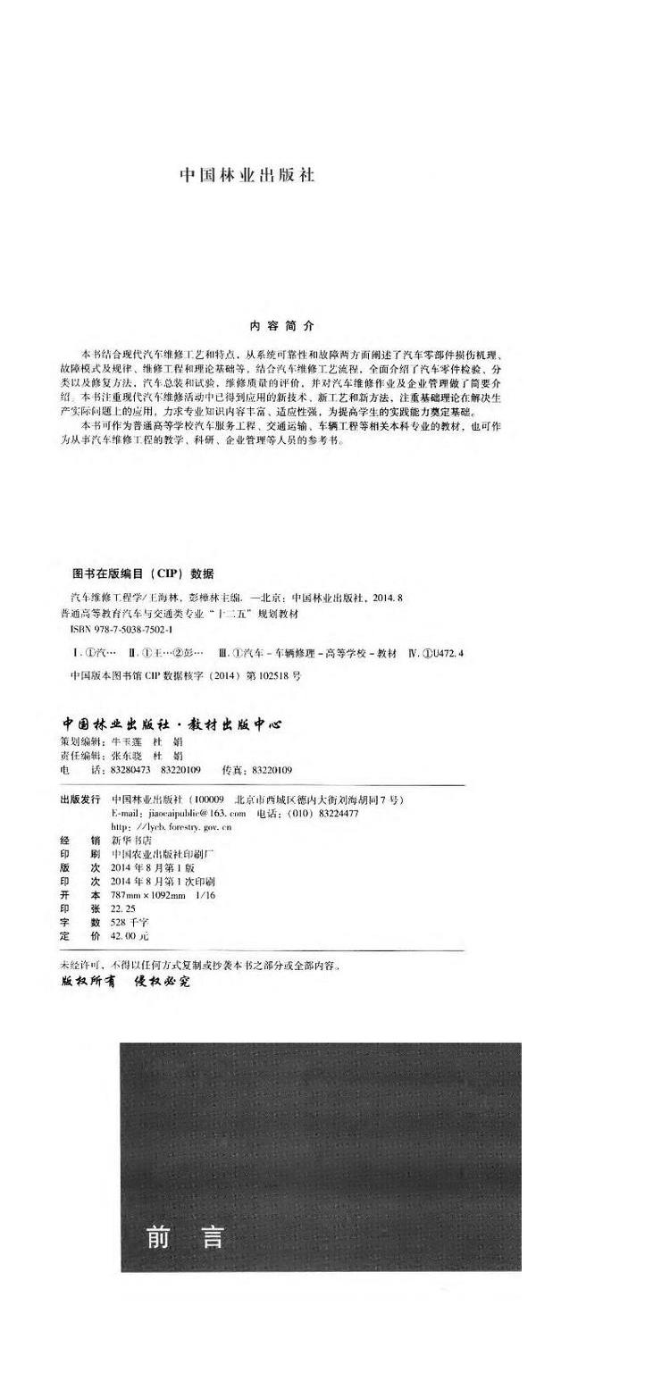 汽车维修工程学(十二五高等) 中国林业出版社教材 7502