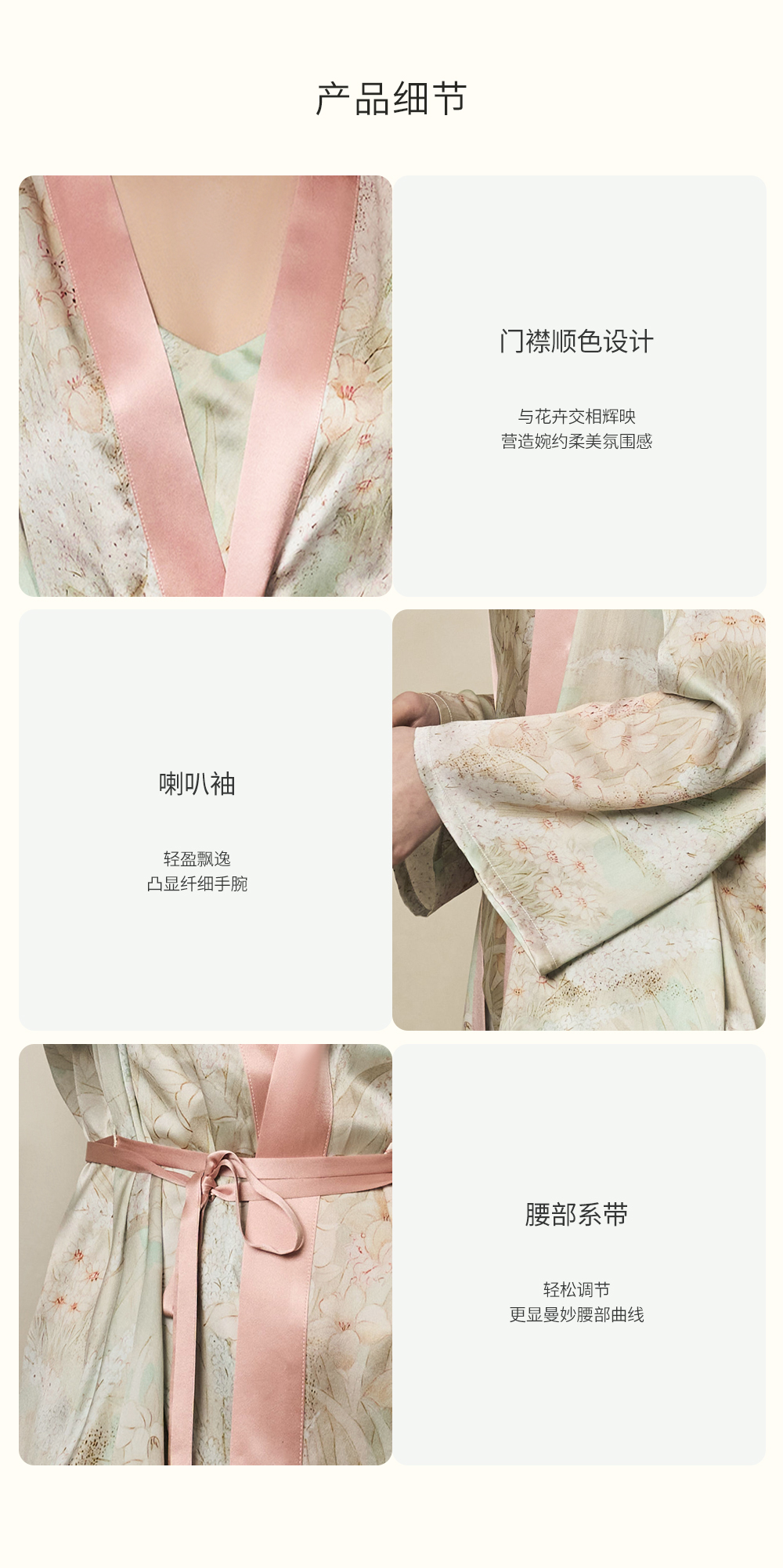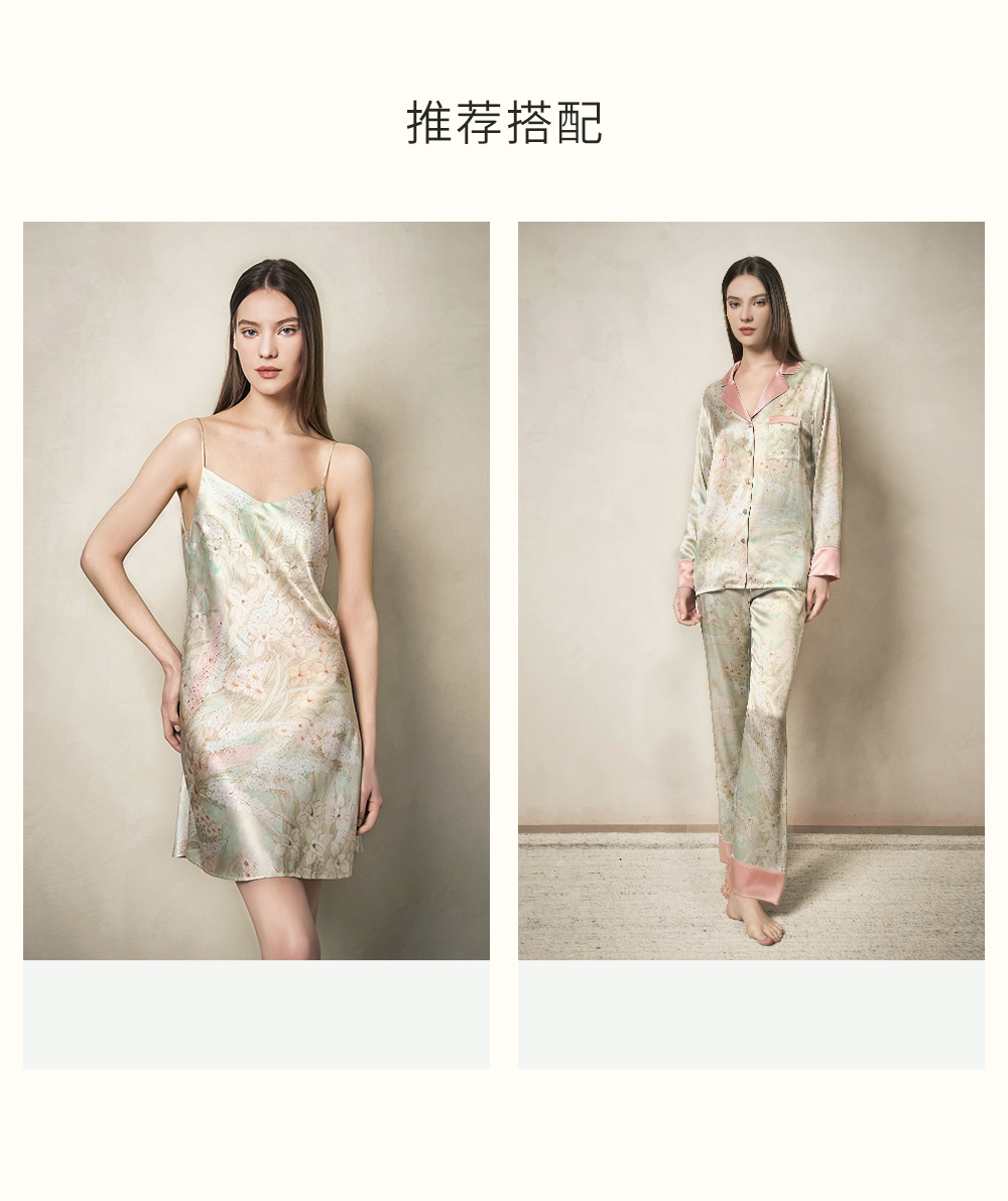 - soloseta专注于真丝织物,灵感源自意大利语,中文含义为“只做真丝”的意思。让睡衣变时尚,居家和外出瞬间切换,使其更具有出街,度假,参加宴会等功能。