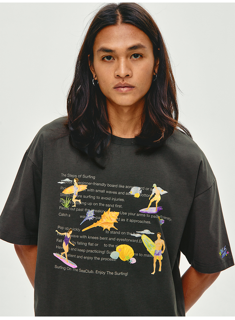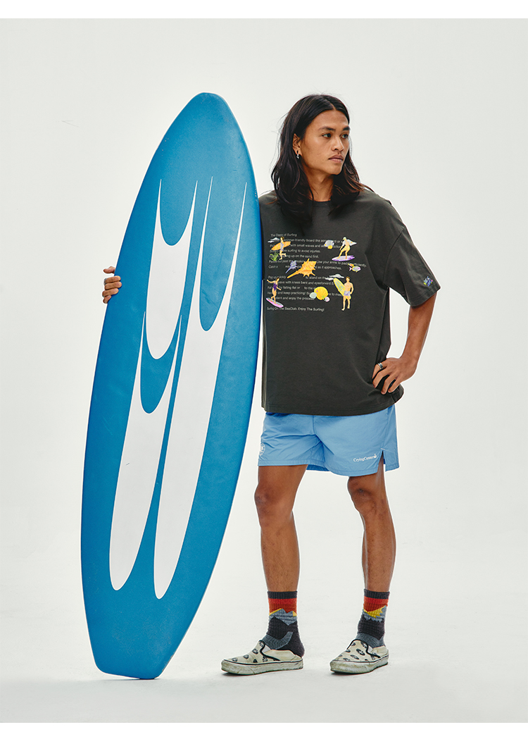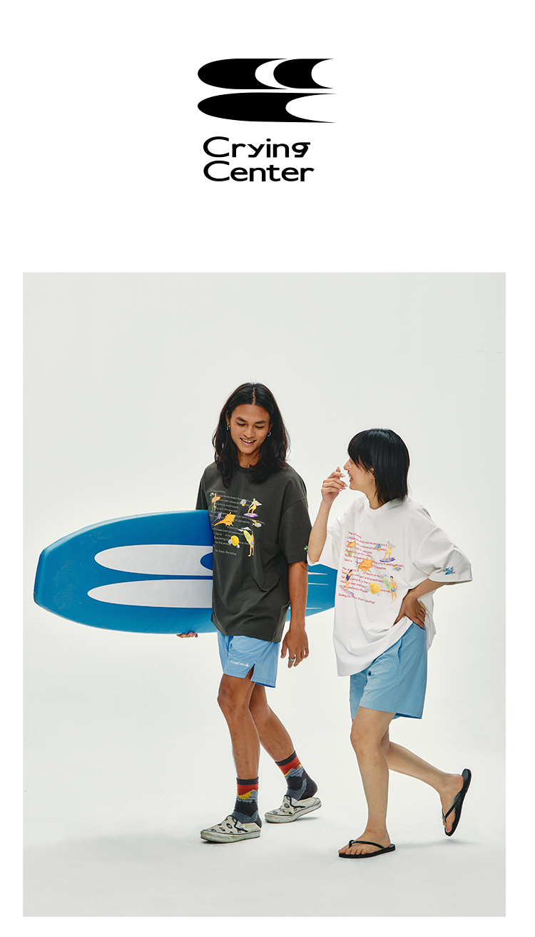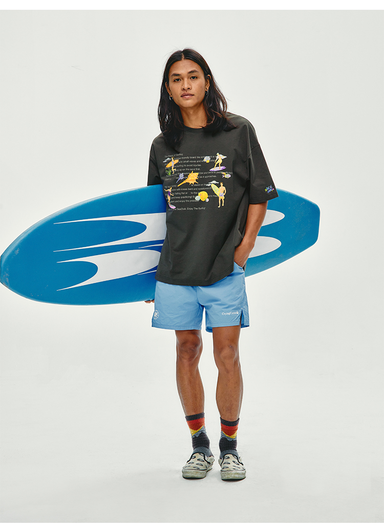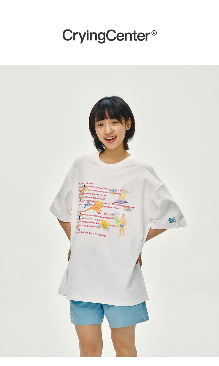 CryingCenter 夏日海边 冲浪步骤 手绘插画宽松T恤短袖 哭喊中心