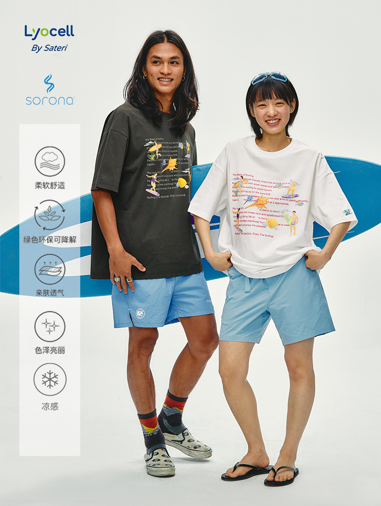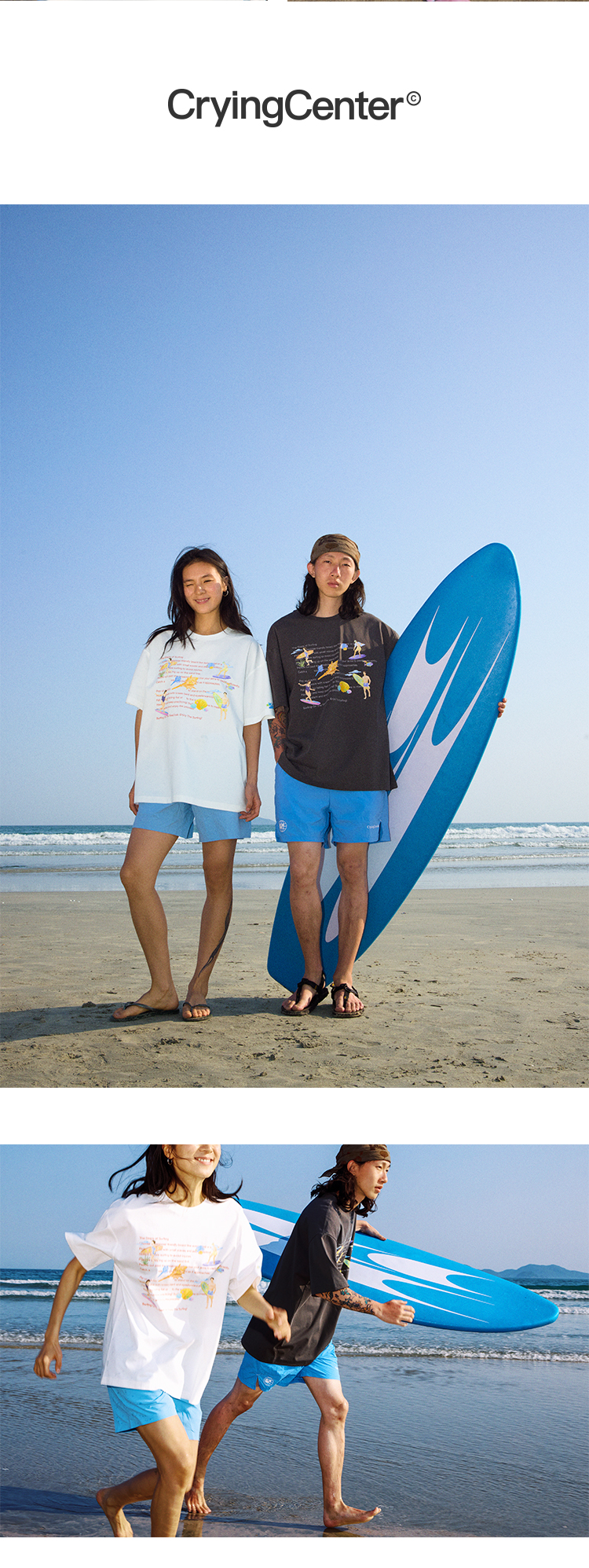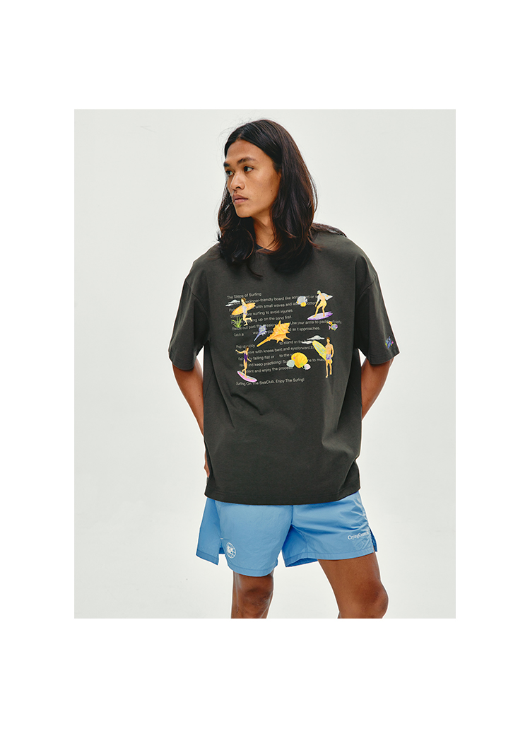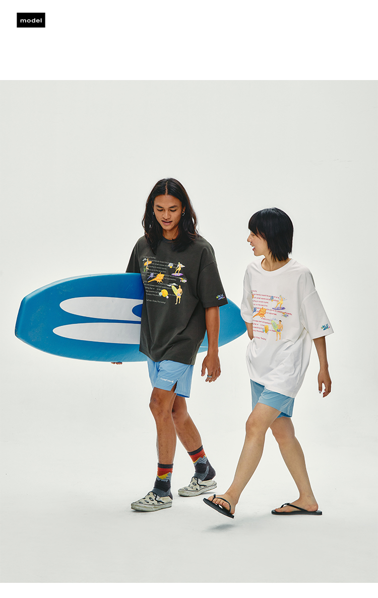 CryingCenter 夏日海边 冲浪步骤 手绘插画宽松T恤短袖 哭喊中心