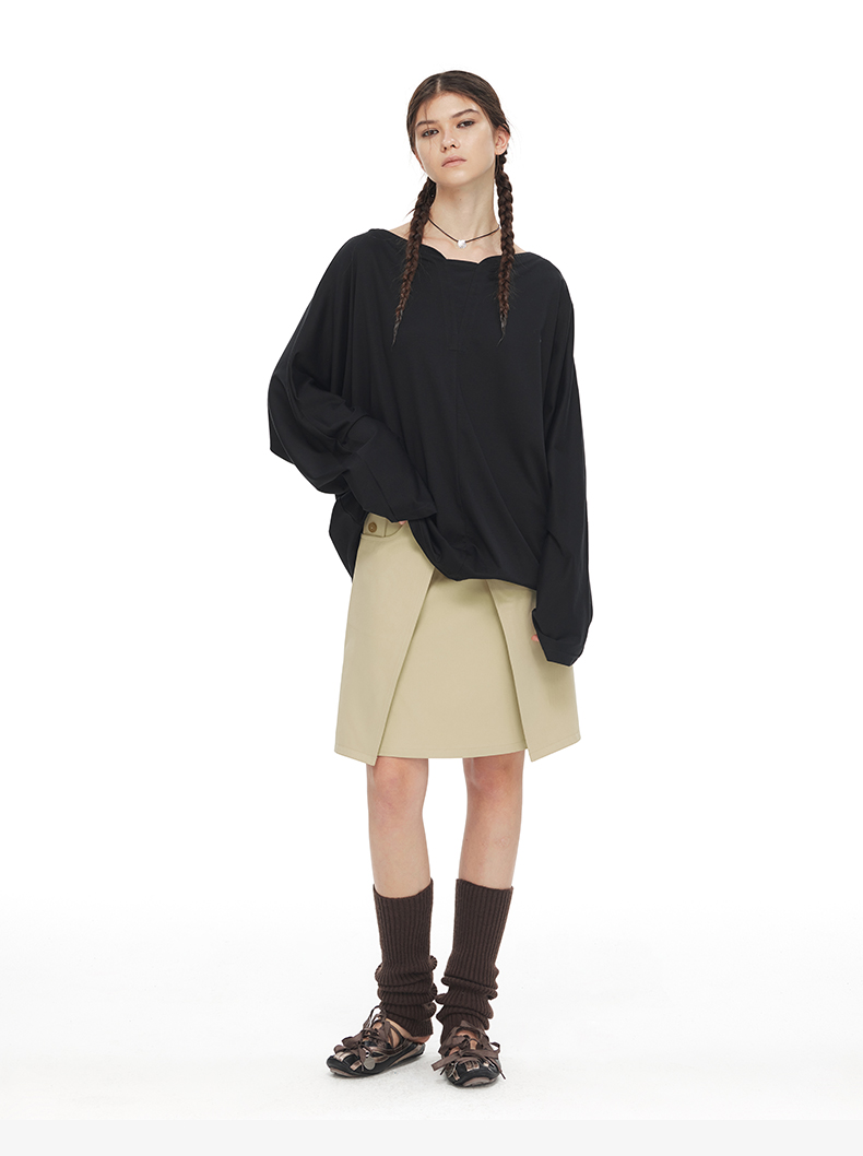 NUTH 一字领宽松百搭垂感蝙蝠袖T恤女