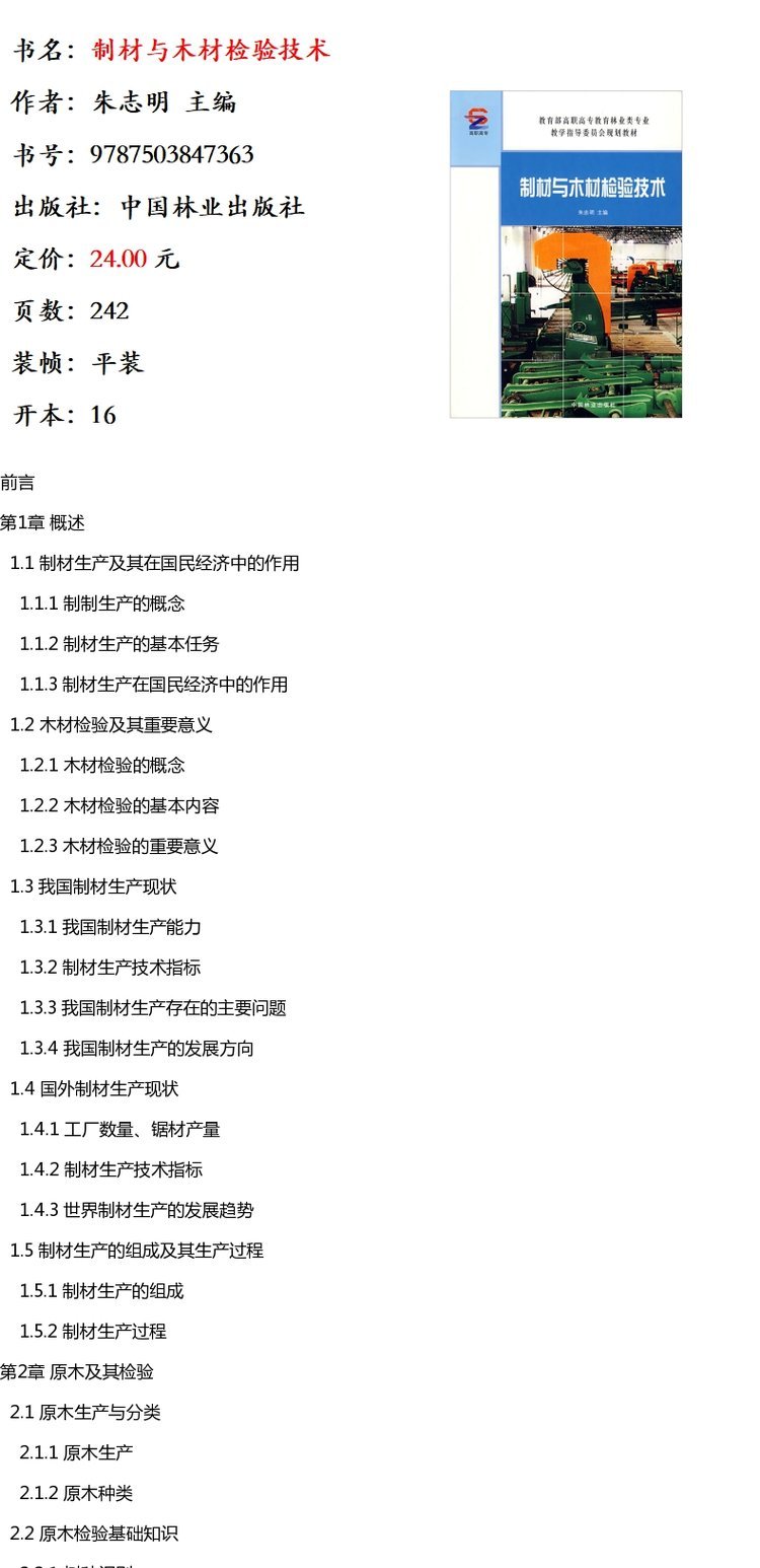 制材与木材检验技术 4736 教育部高职高专教育林业类专业教学指导委员会规划教材 中国林业出版社 畅销书