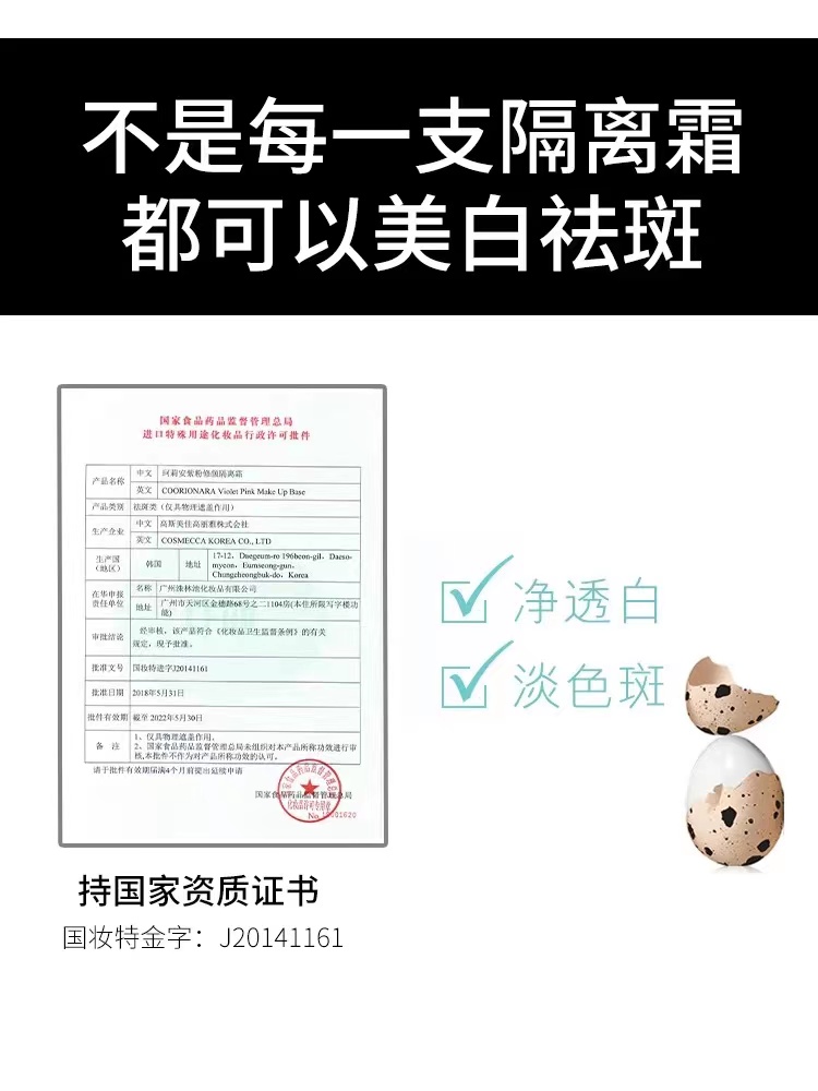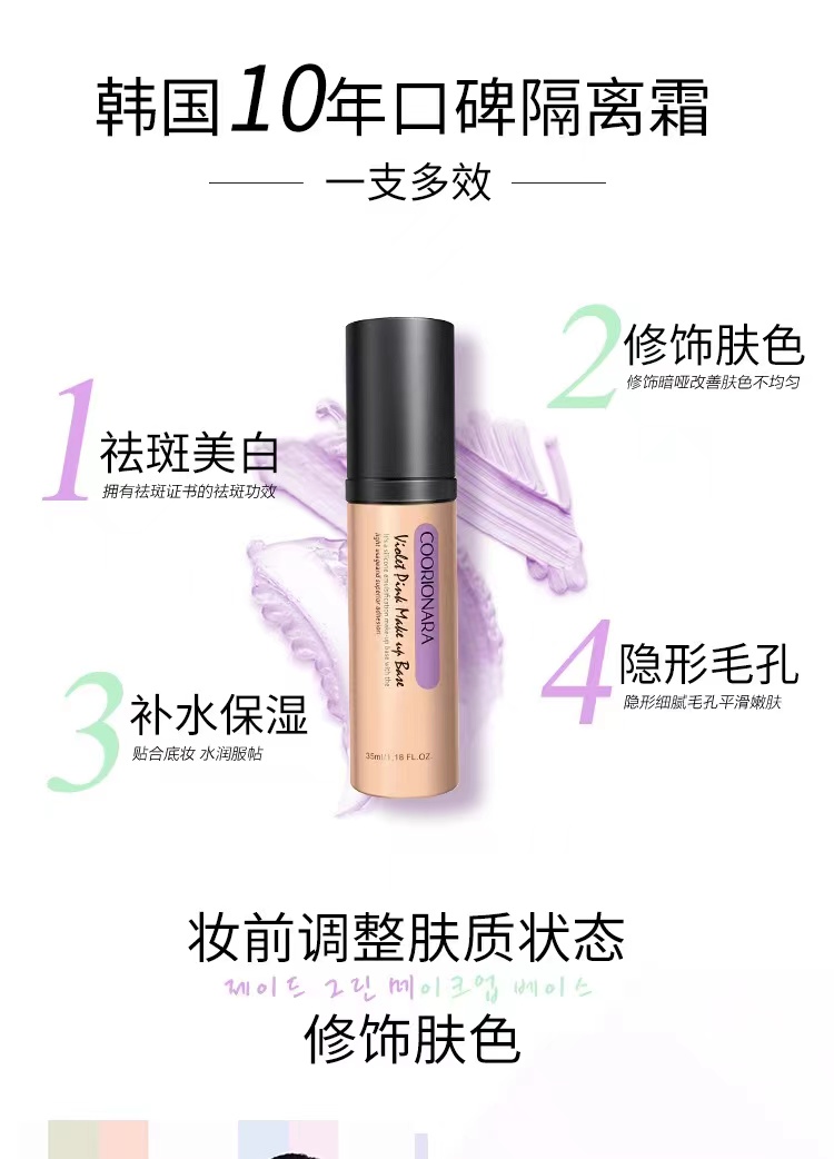 珂莉安莹绿/紫粉修复隔离霜 35ml修颜持久遮瑕隔离霜