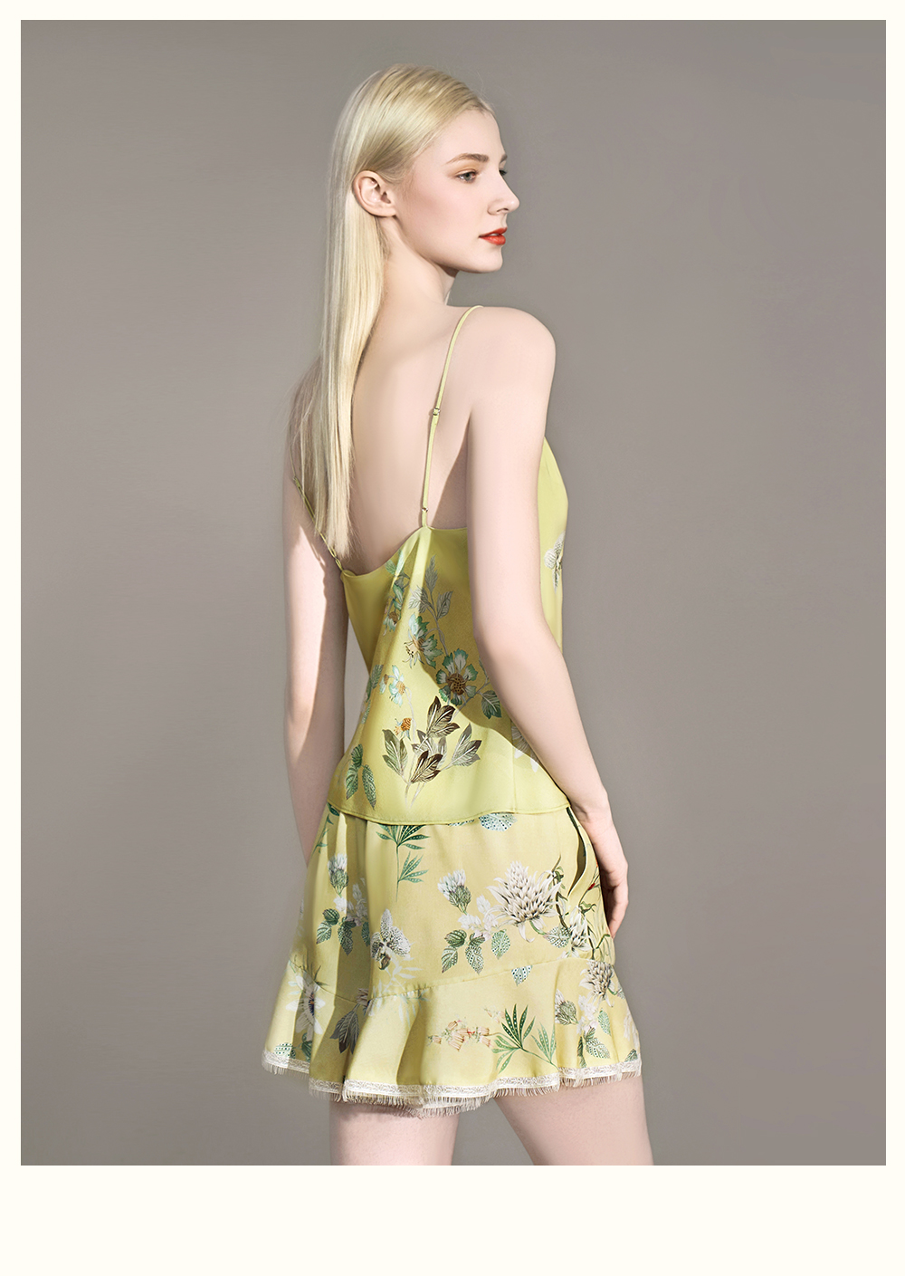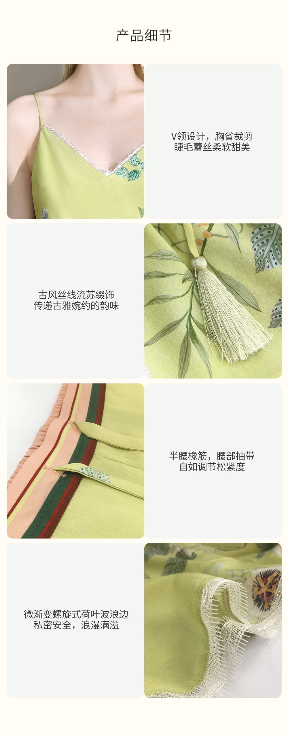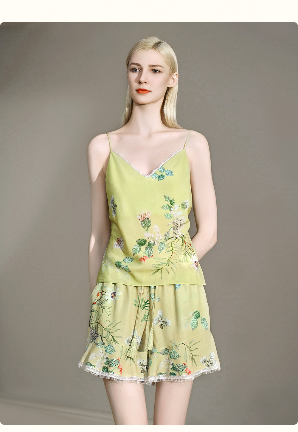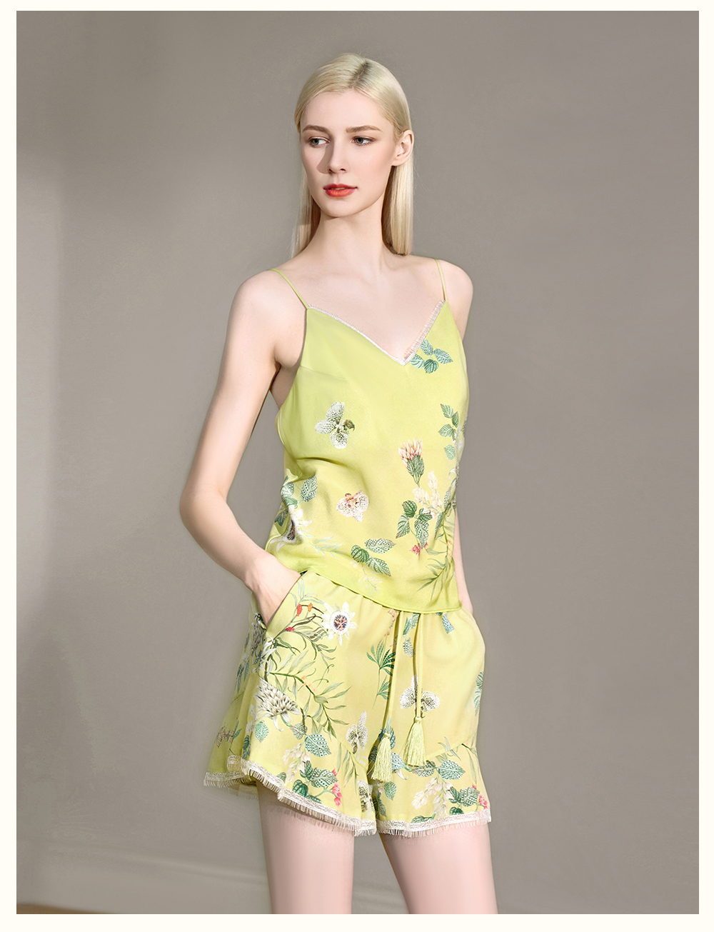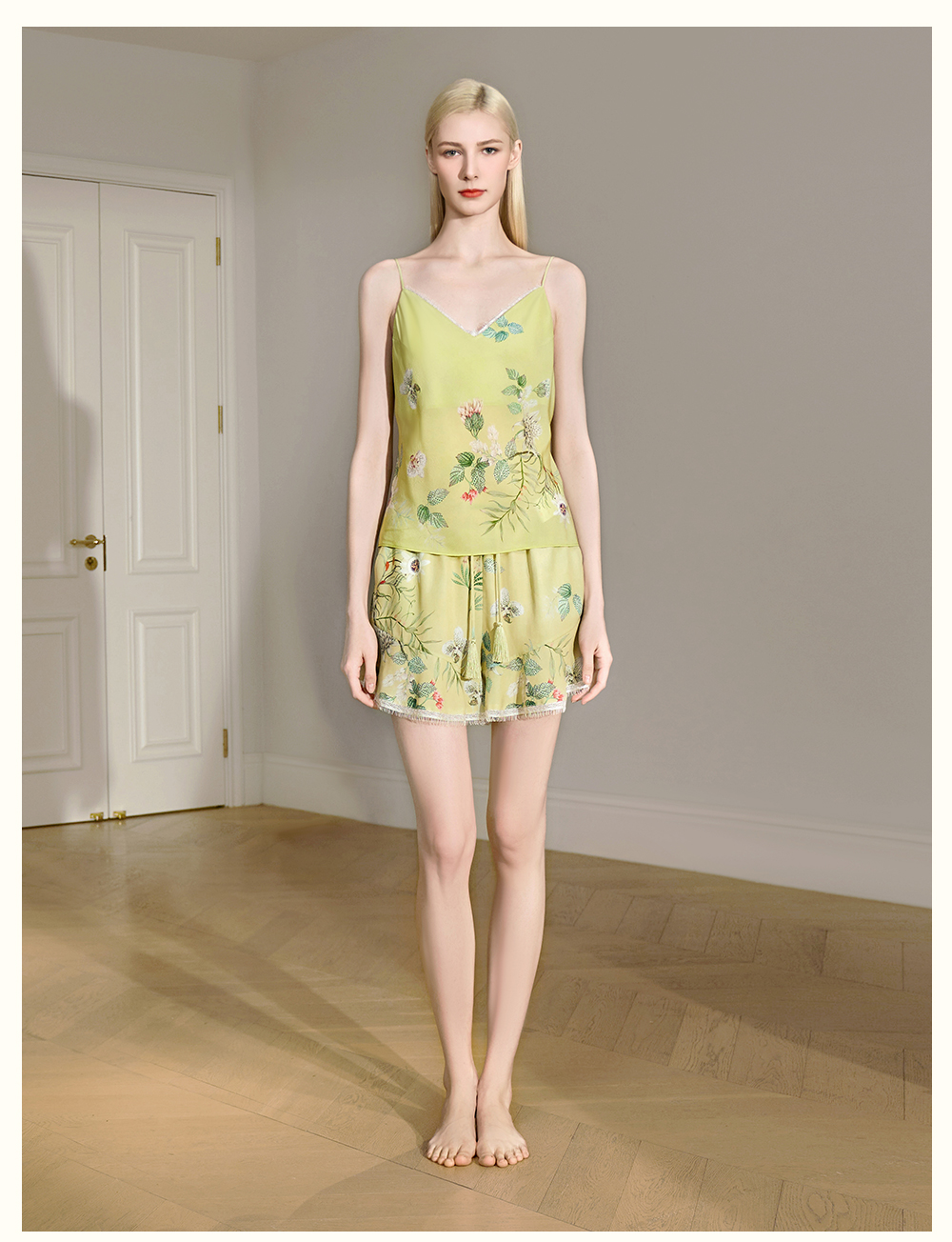Solo seta真丝睡衣女短裤吊带套装丝绸家居服2025秋桑蚕丝度假风