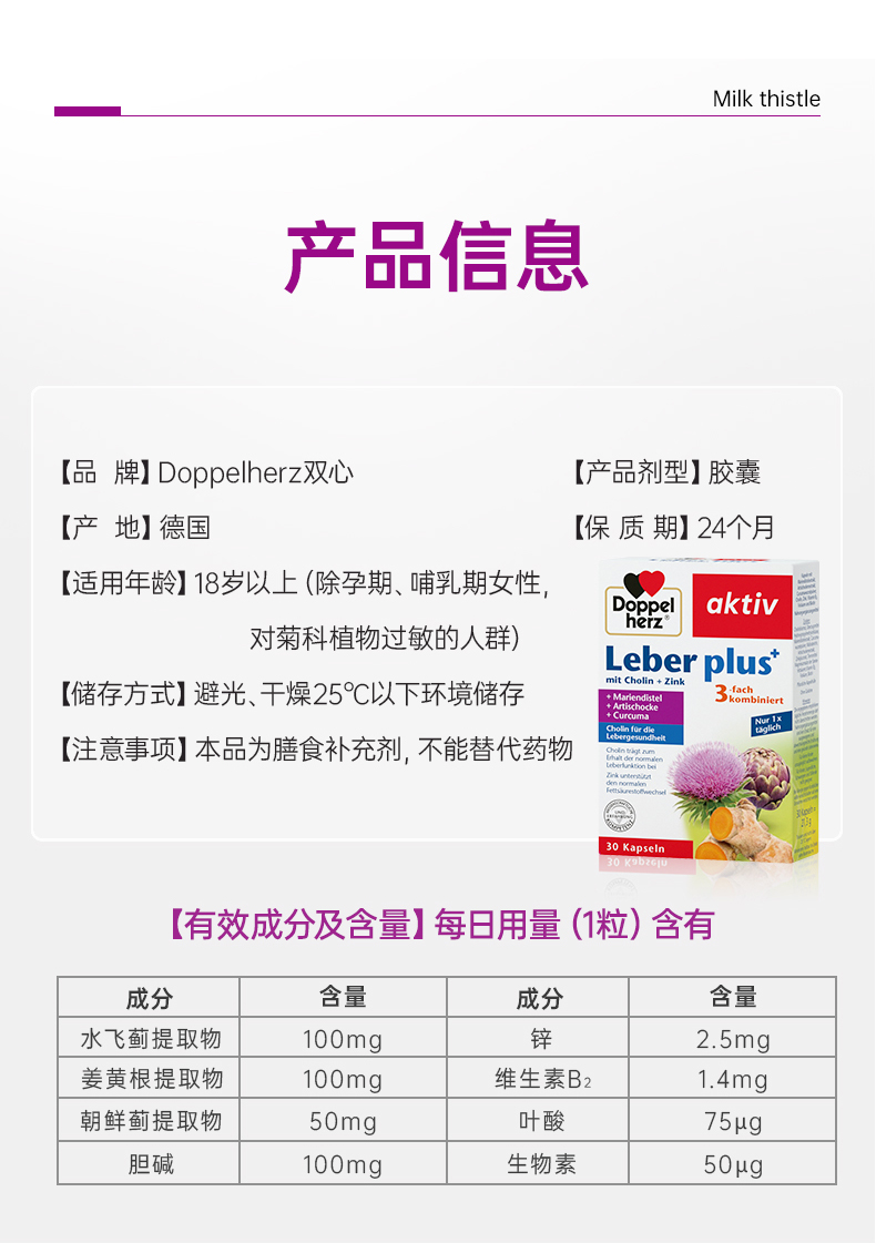 【礼想心动】Doppel Herz 双心 水飞蓟护肝精华胶囊 30粒/盒