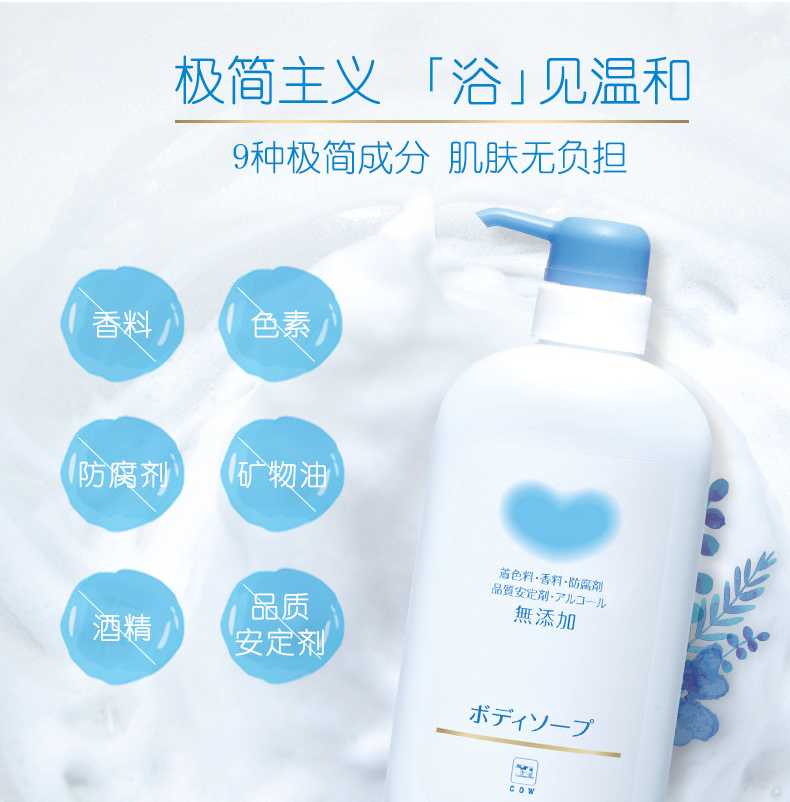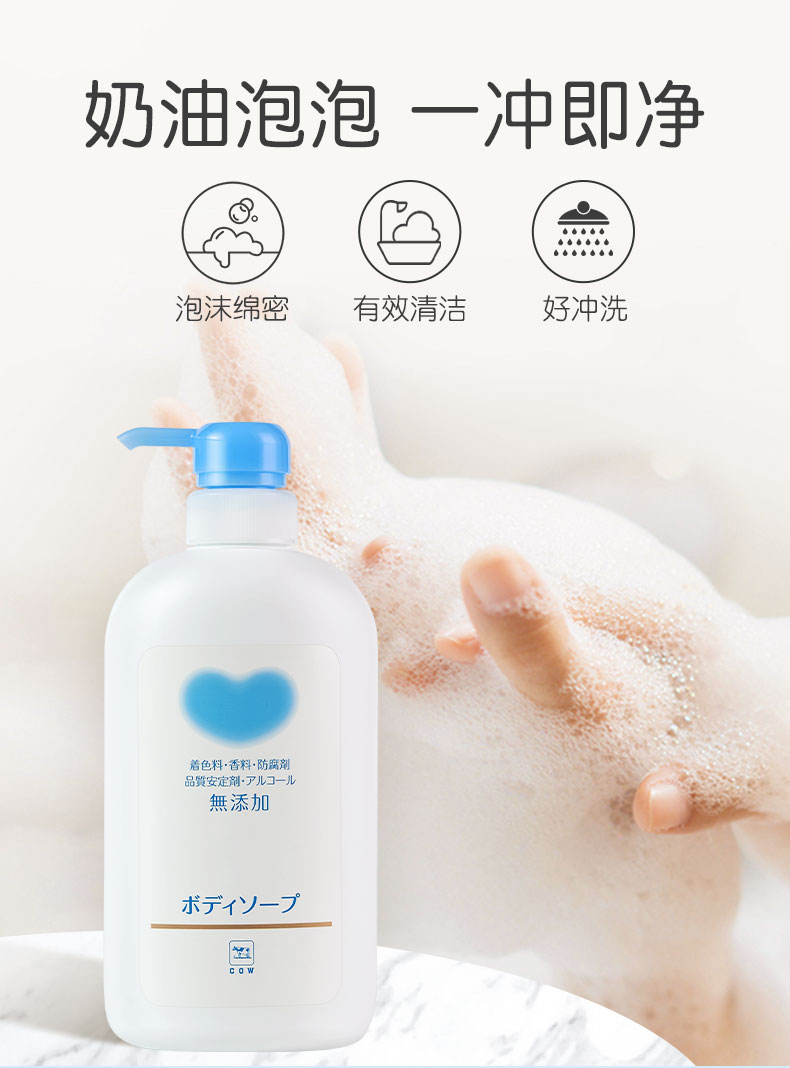 【保税仓】COW/牛乳石碱牛奶无添加泡沫瓶装沐浴露新版500ml
