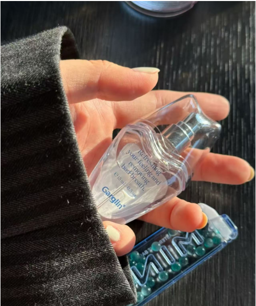 吃一些大蒜,螺狮粉比较重味的东西,都可以拿出来喷一喷,口气立马变得清新起来~
