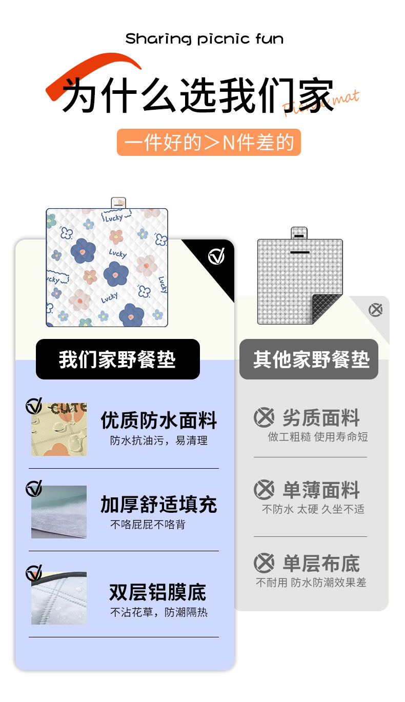 【新款野餐垫】户外露营野餐坐垫 公园春游防潮垫 防水野餐垫 沙滩露营垫
