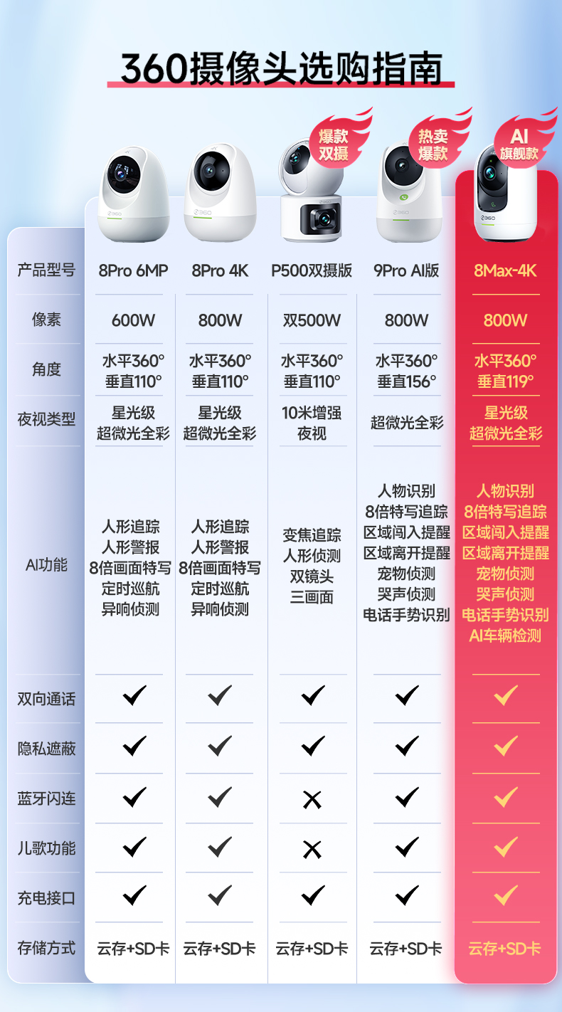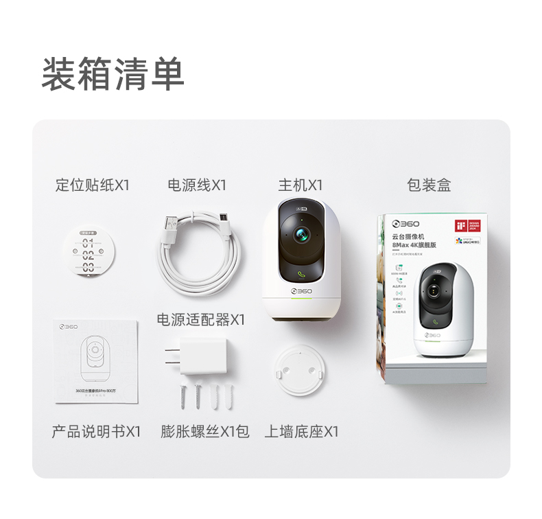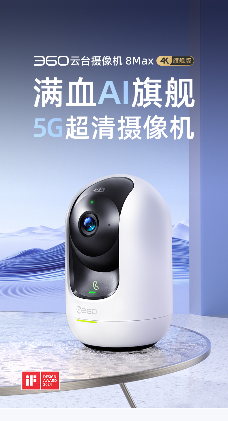 【超值】360摄像头8Max 4K 室内监控 AI 360度全景摄像头 一键呼叫 超微光全彩 镜头遮蔽