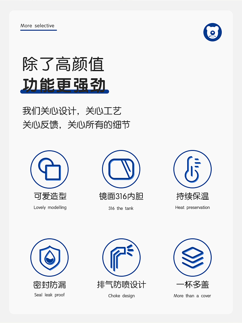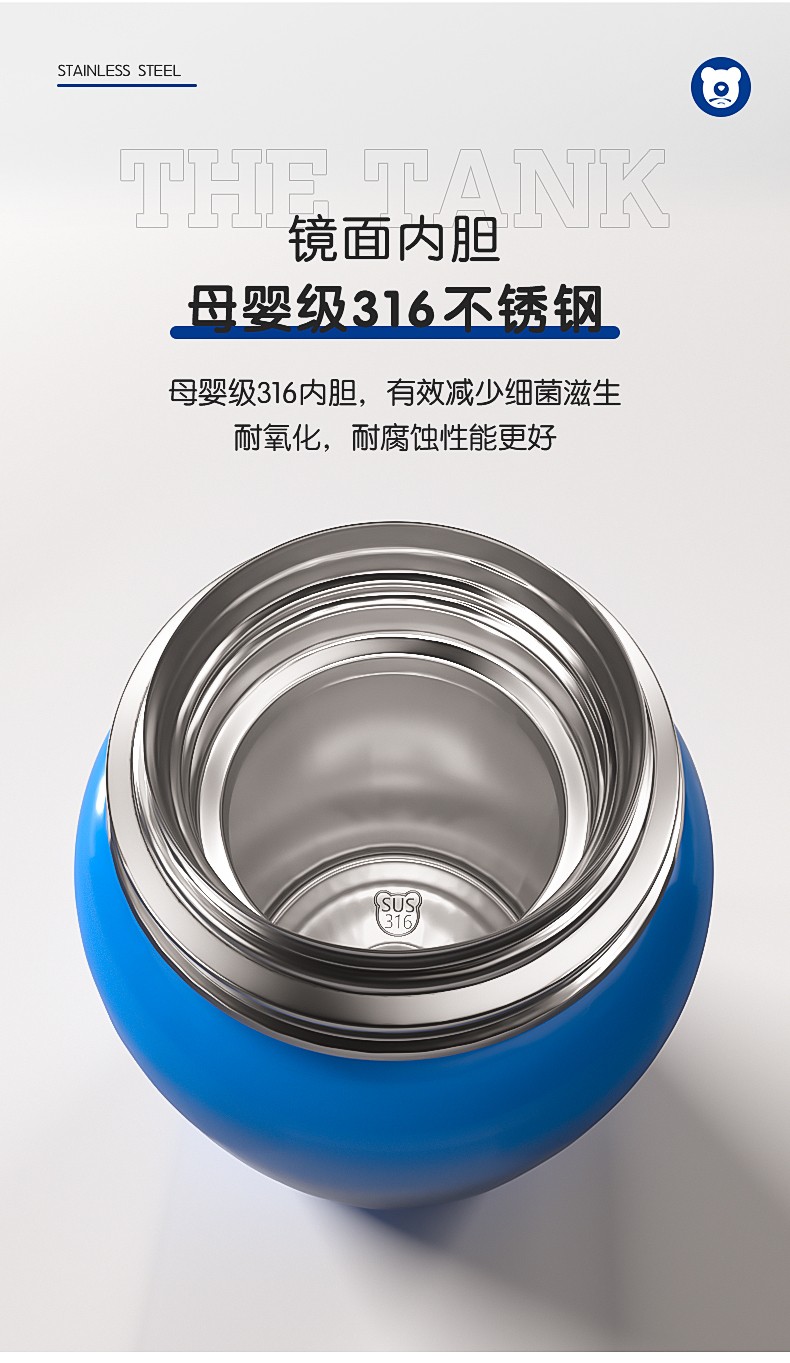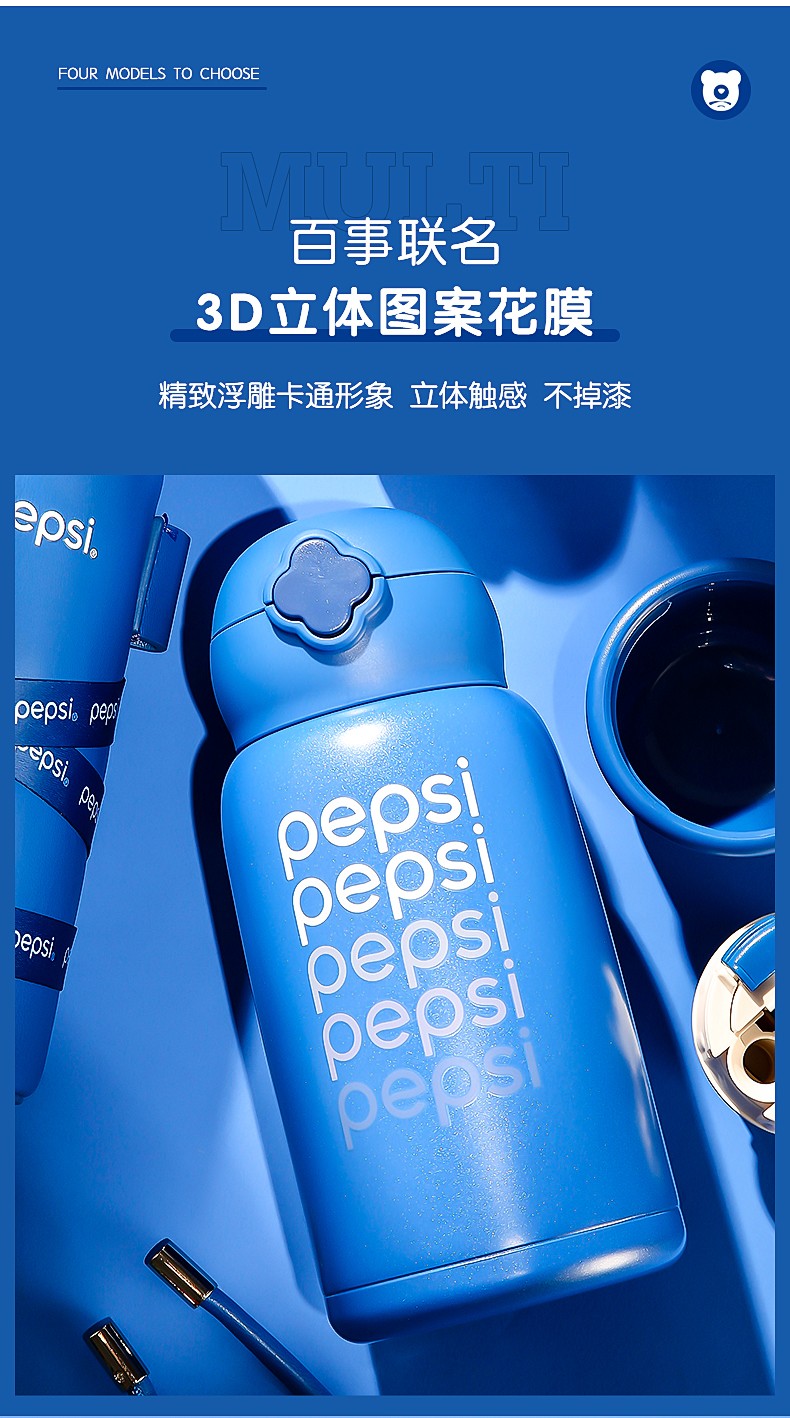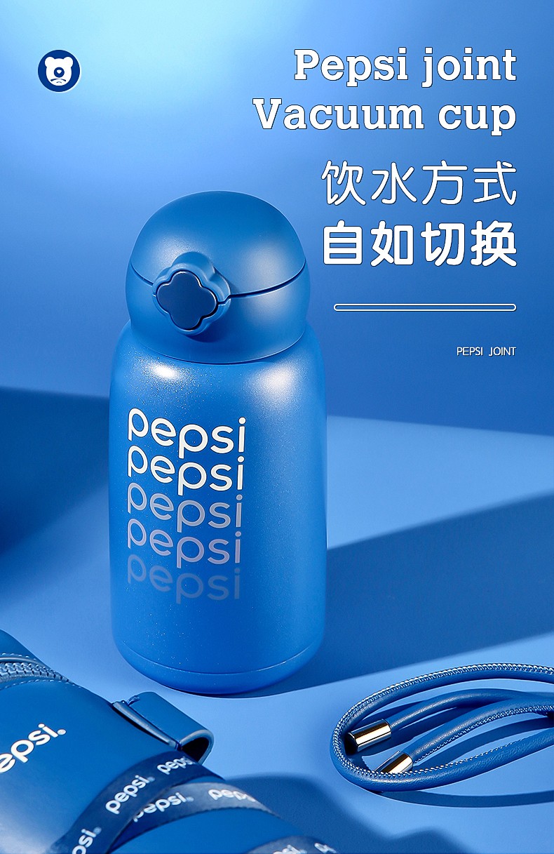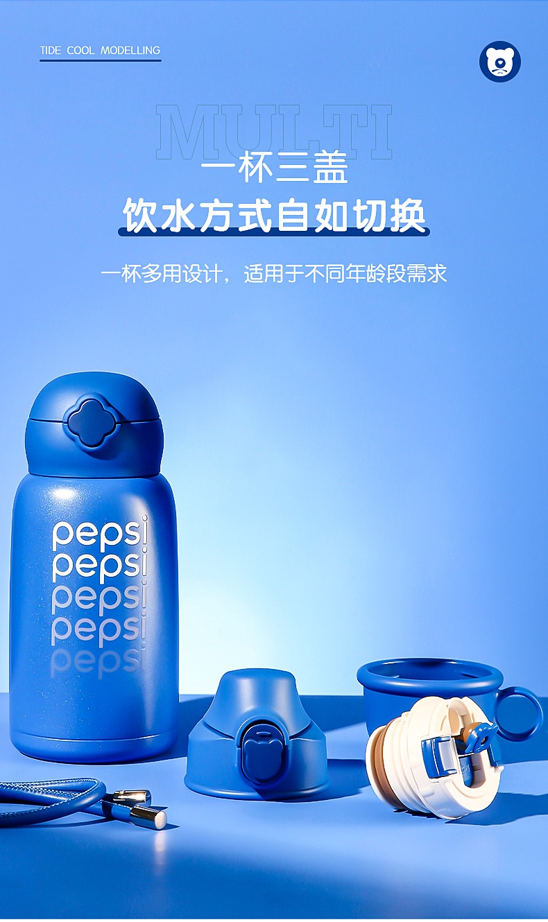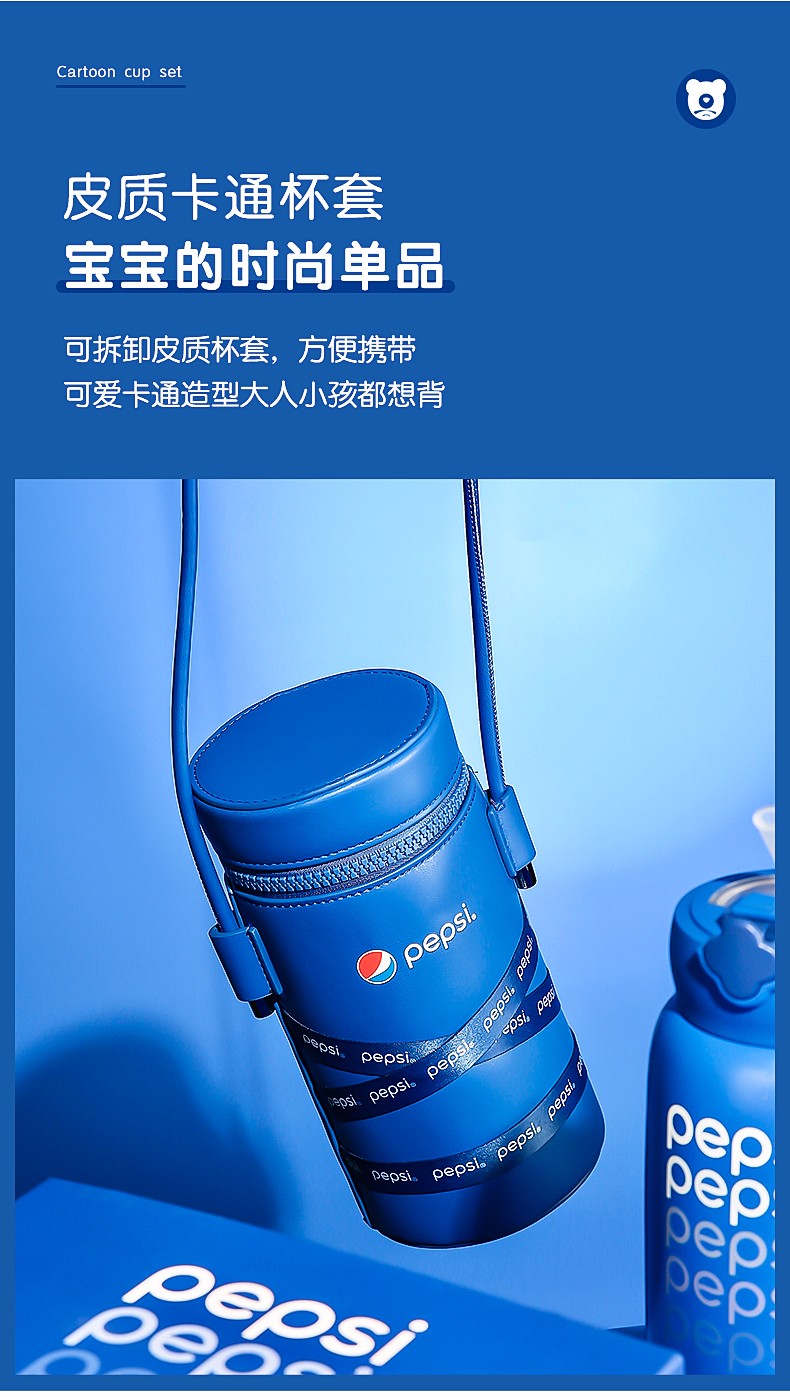 BEDDYBEAR杯具熊 四叶草儿童保温杯直饮背带成人不锈钢水杯百事蓝丝绒 630ml