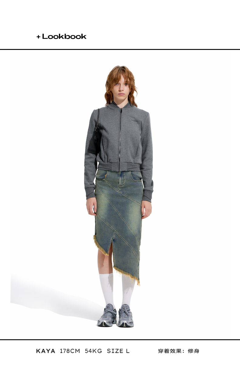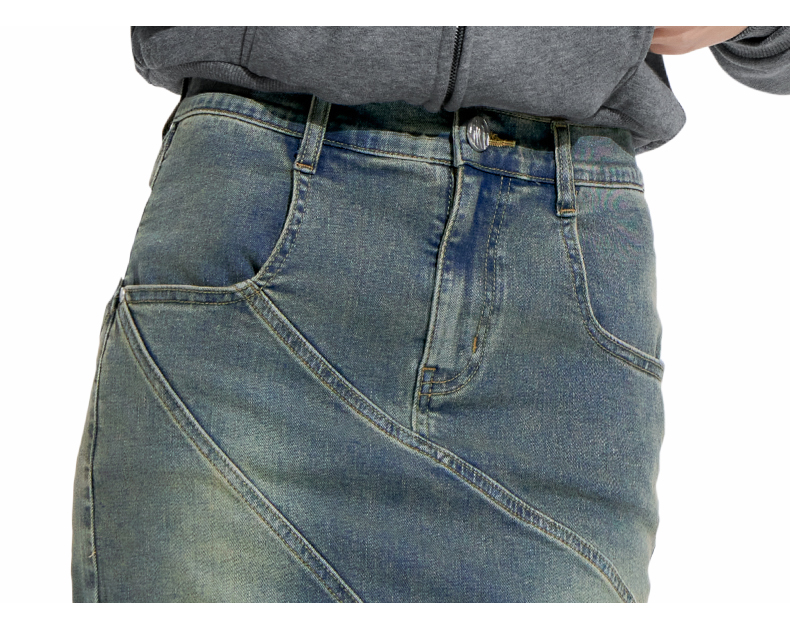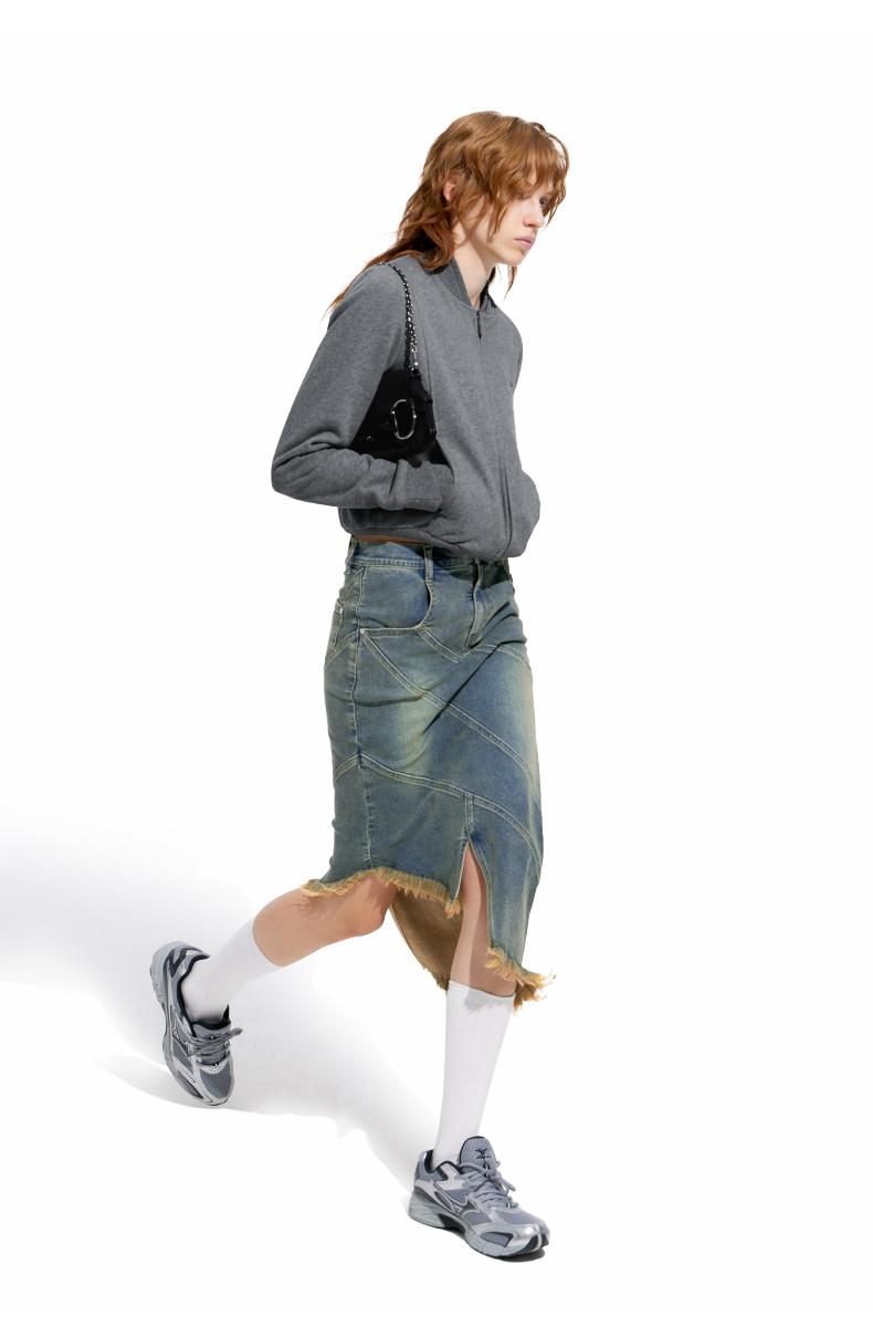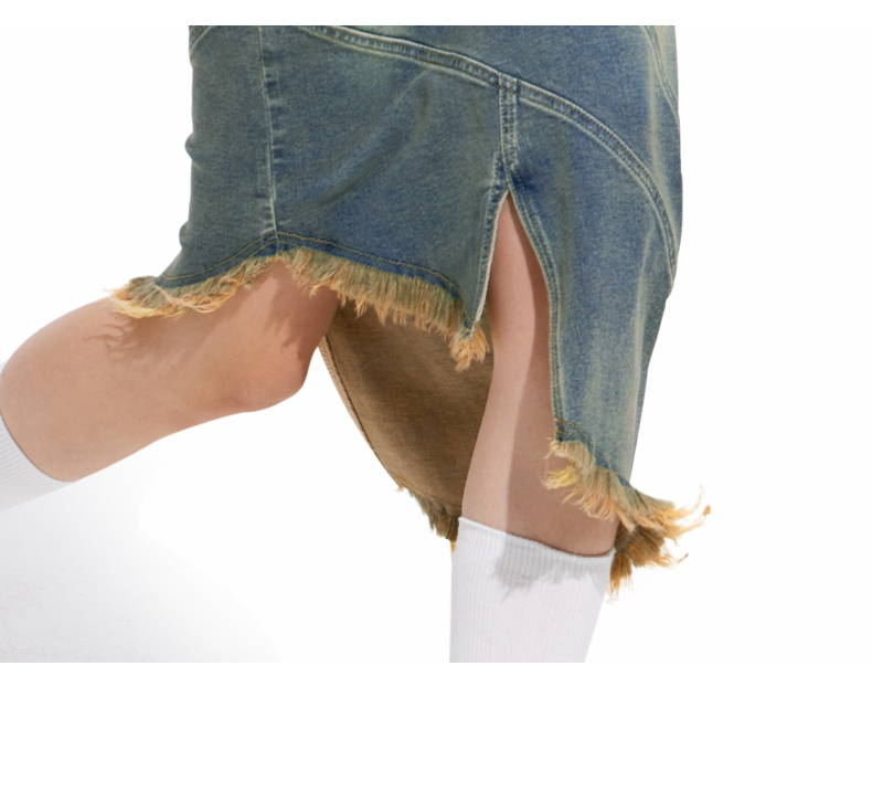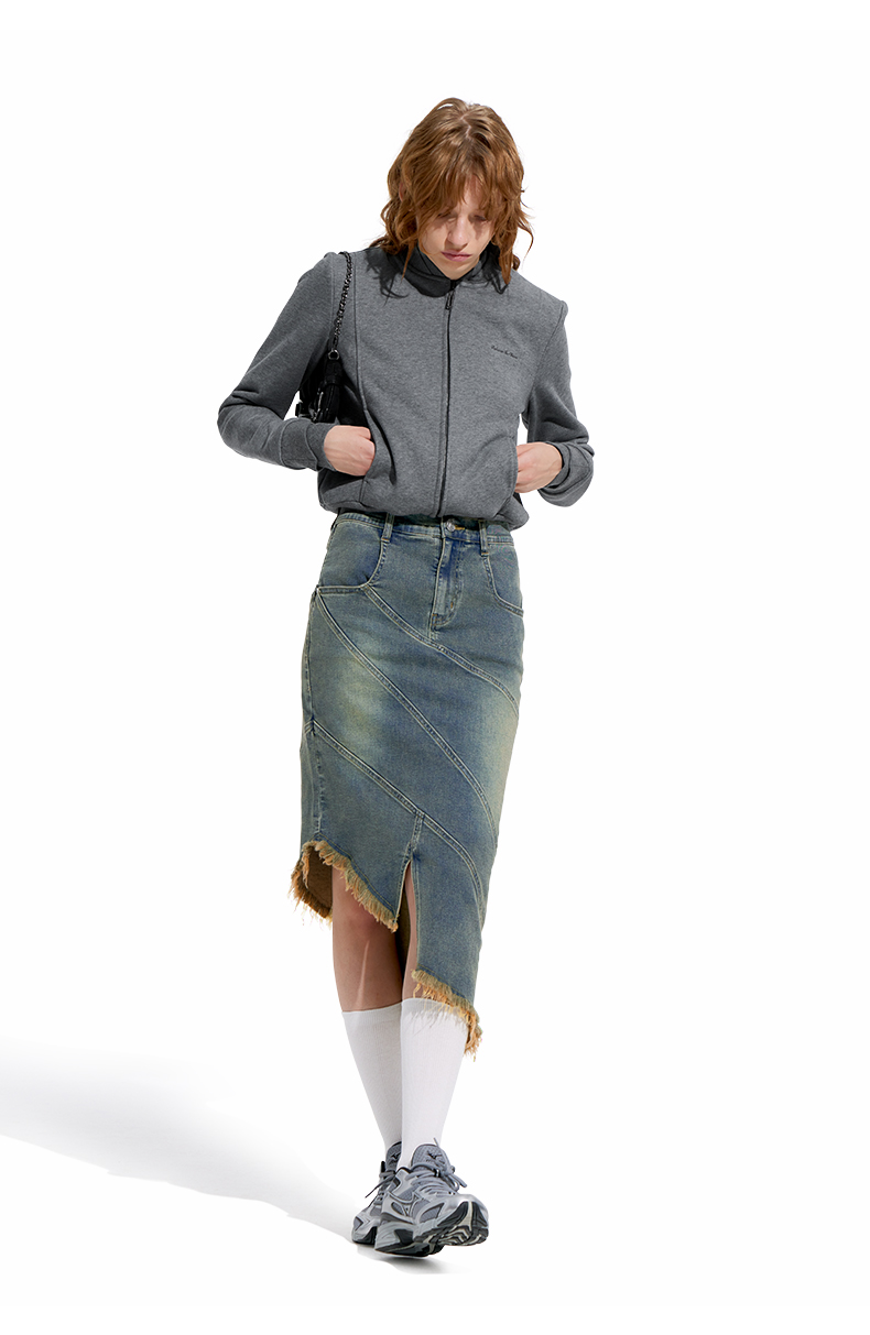 NUTH“画中少女”复古做旧牛仔裙不规则下摆半身裙