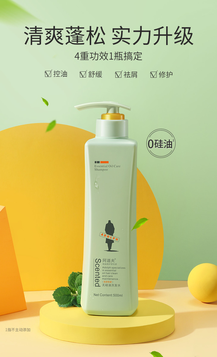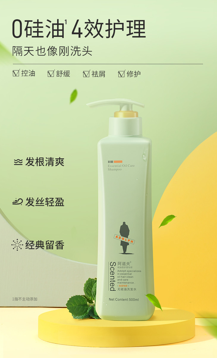 【阿道夫旗舰店】精油香氛无硅油洗发水500ml三瓶共1.5L 控油舒缓祛屑修护四效合一