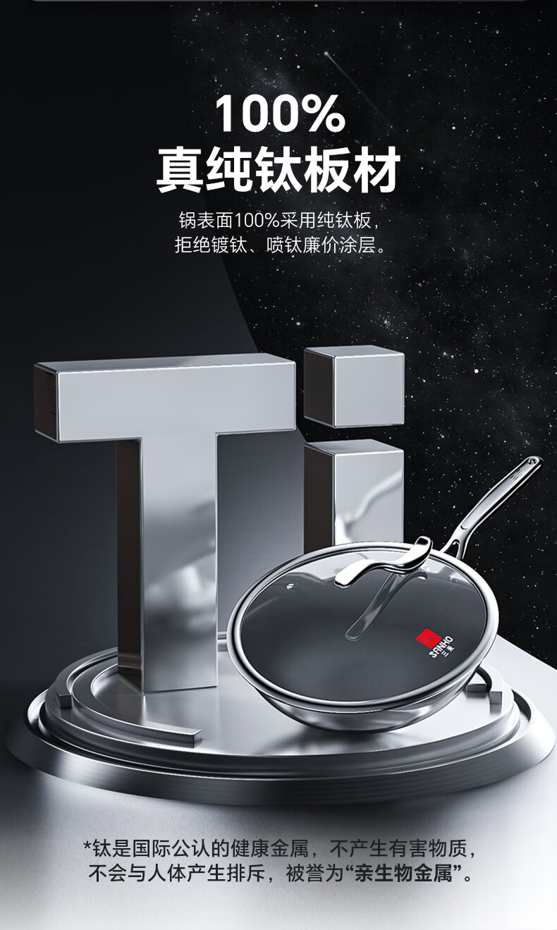 三禾炒锅无涂层钛不粘锅少油烟平底炒菜锅炉灶通用磁炉纯钛无涂层钛锅炒锅煎锅奶锅