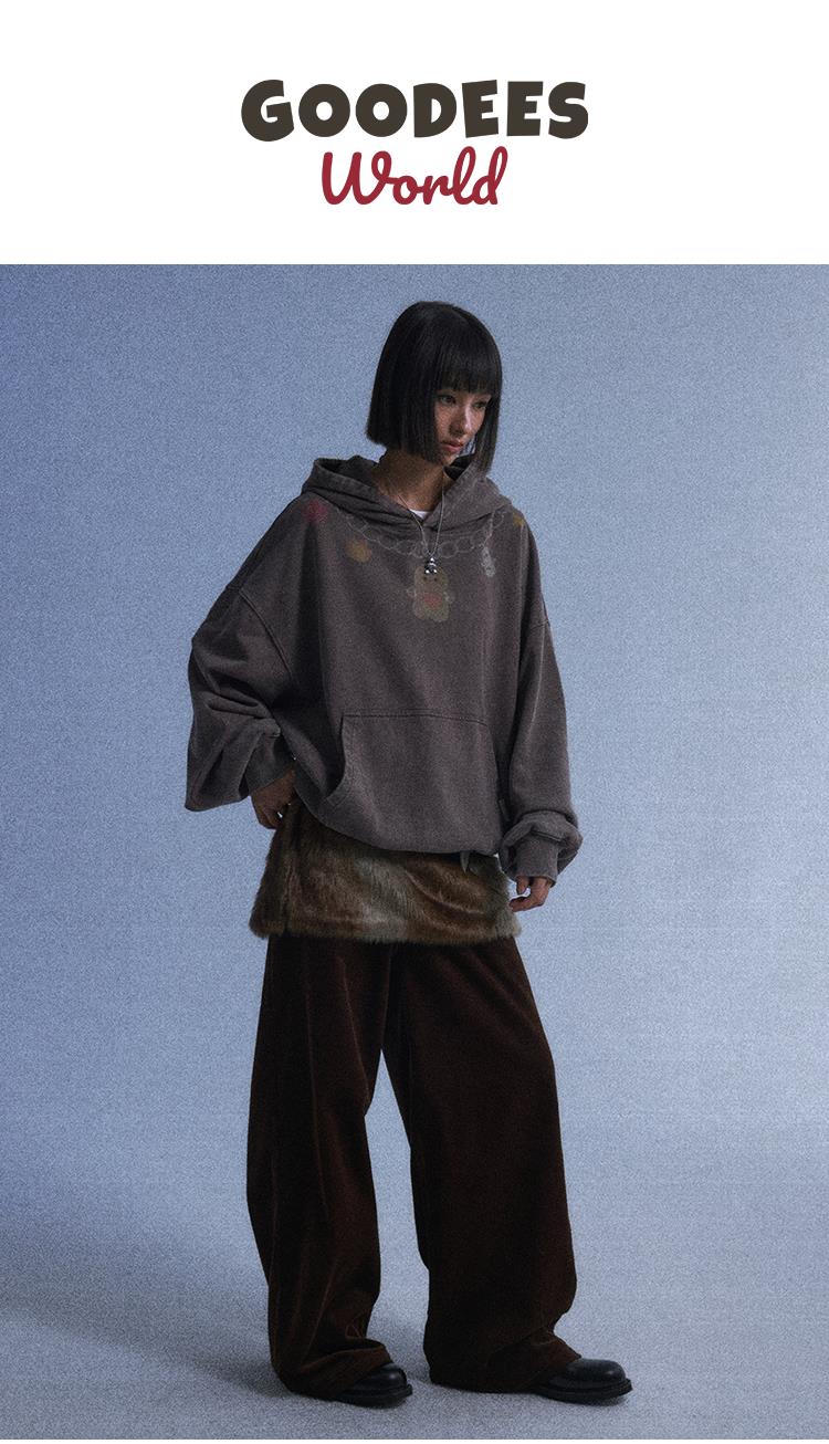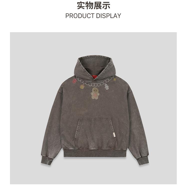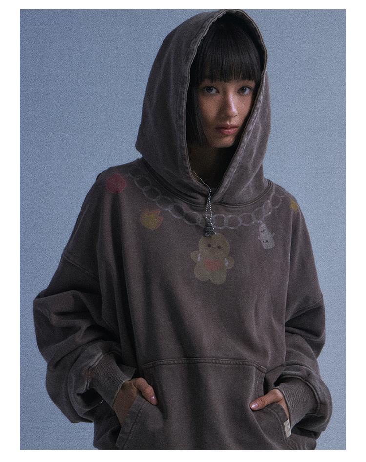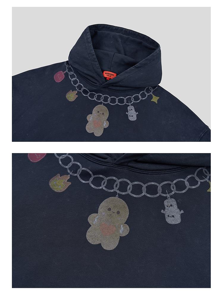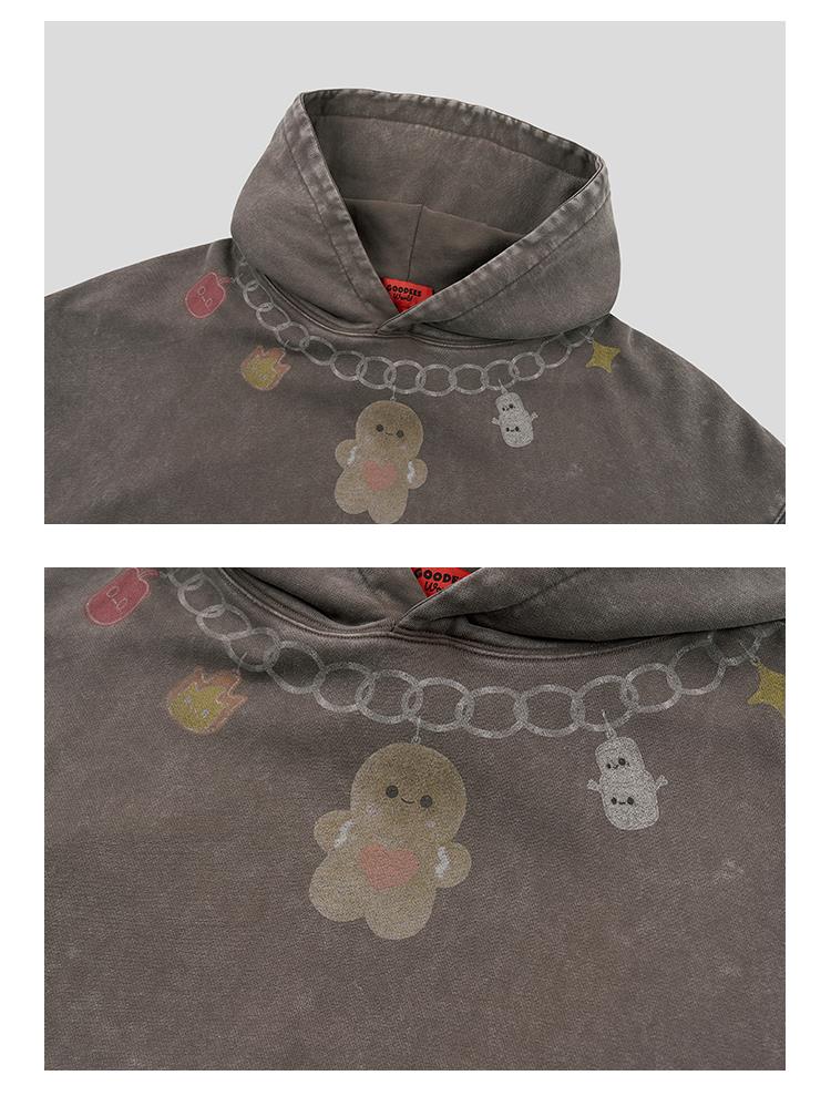 GOODBAI GOODEES爱心姜饼人项链印花做旧连帽卫衣