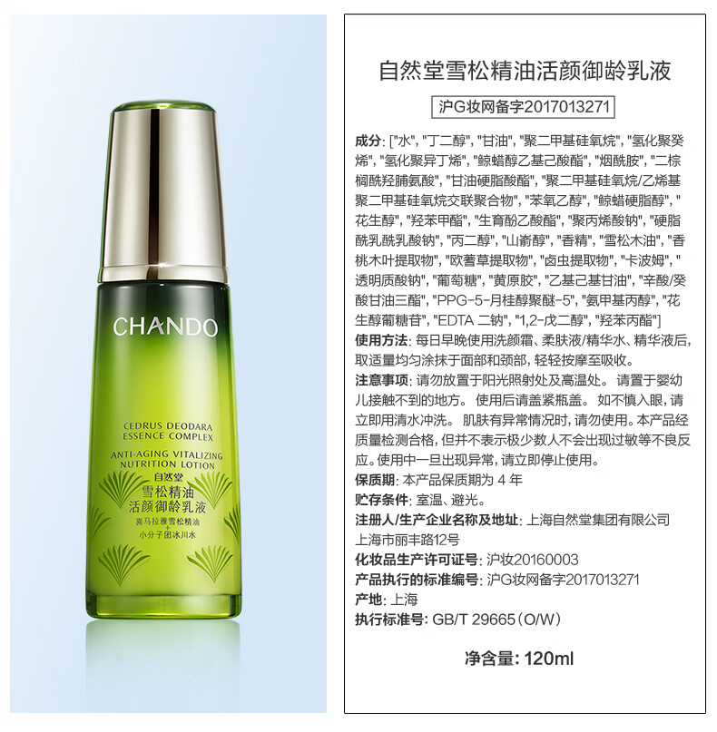 自然堂雪松精油活颜御龄乳液120mL