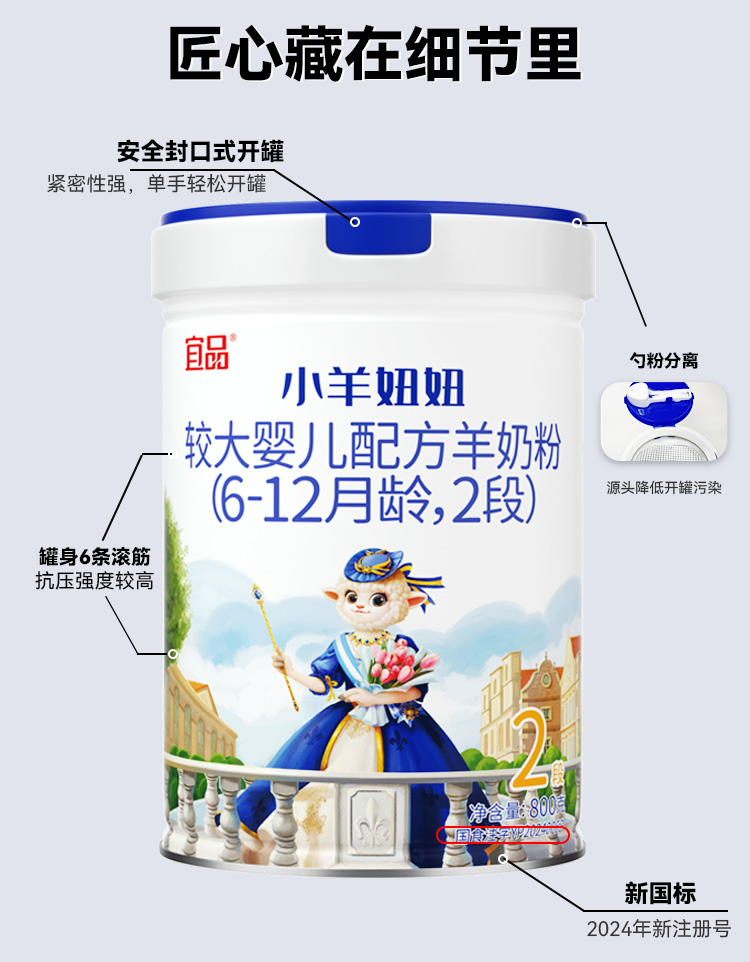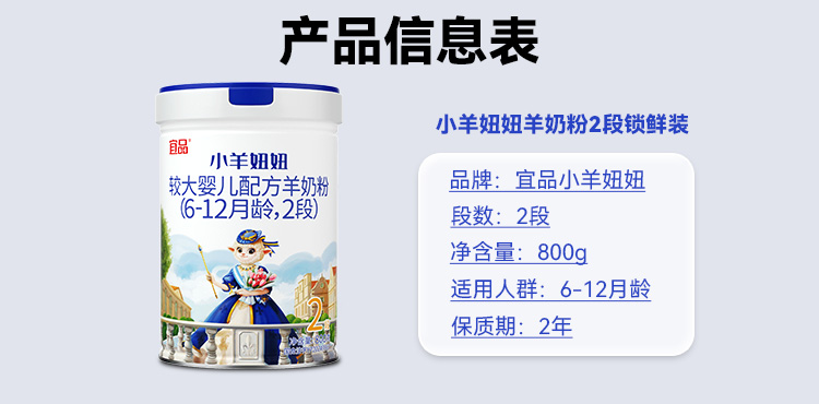 新国标宜品小羊妞妞较大婴幼儿配方纯羊奶粉800g【2段】