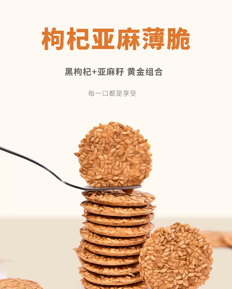 【8.8抢❗枸杞亚麻籽薄脆饼】甄选品质原料制作,优选黄金亚麻籽,黑枸杞粉精细研磨,0反式脂肪酸美味健康无负担,办公室代餐非油炸零食品L