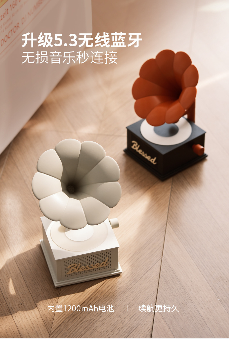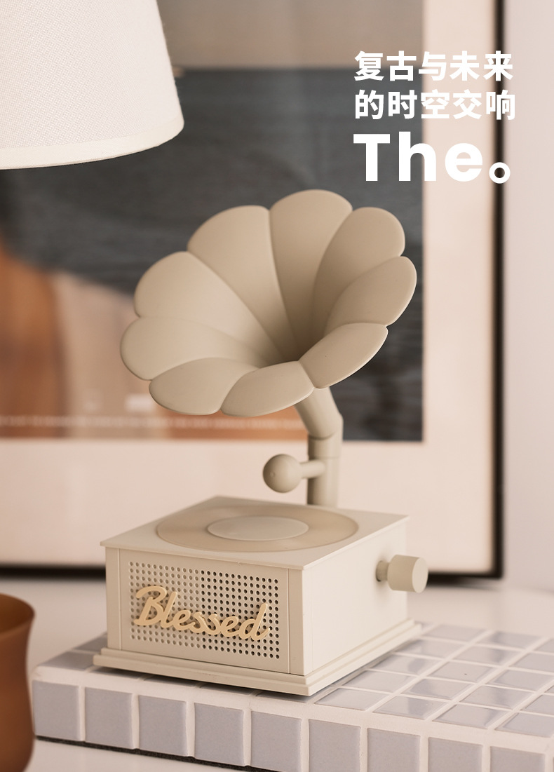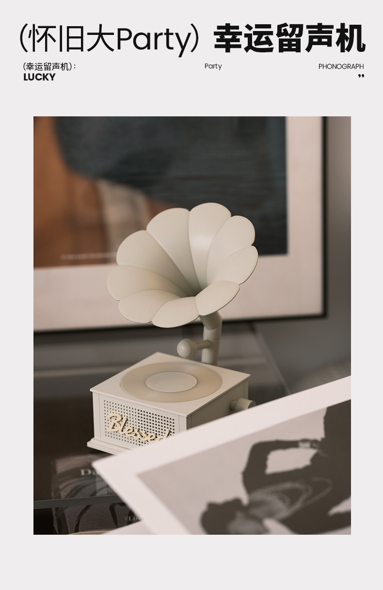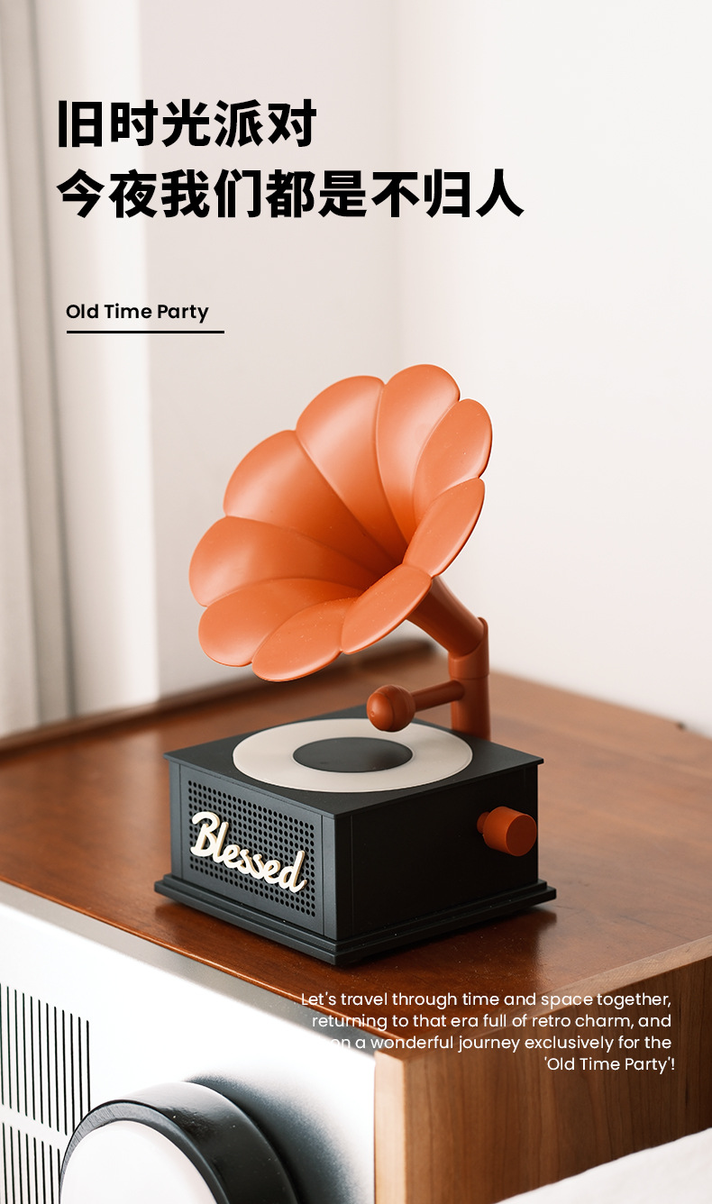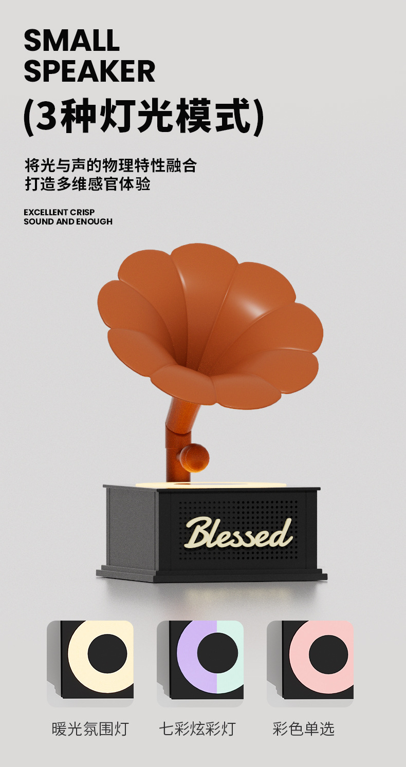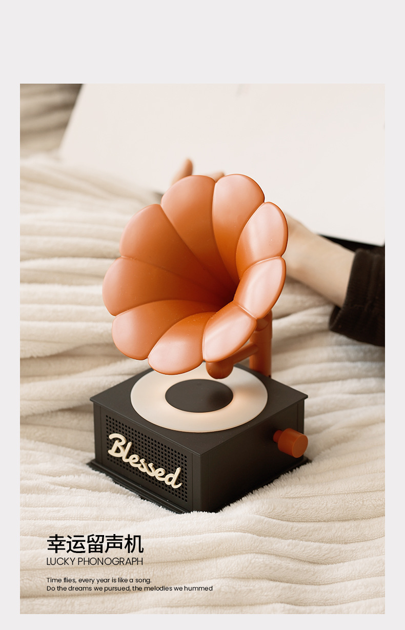 复古留声机音响🎶幸运留声机无线蓝牙音箱 氛围灯复古唱片小音响 客厅桌面艺术摆件