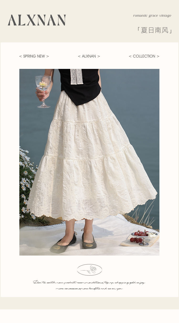 鹿向南 「夏日南风」法式白色半身裙女夏新款显瘦a字半裙气质长裙
