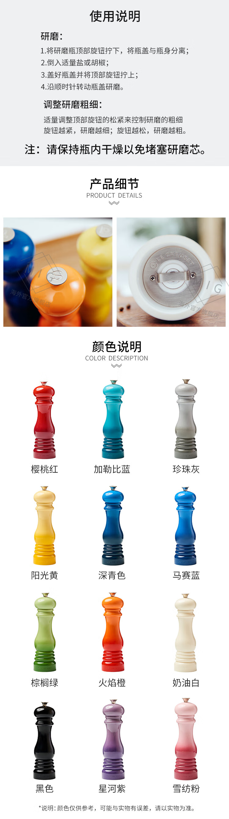 法国进口(Le Creuset)酷彩调料研磨器(盐+胡椒)迷你版11cm经典橘色