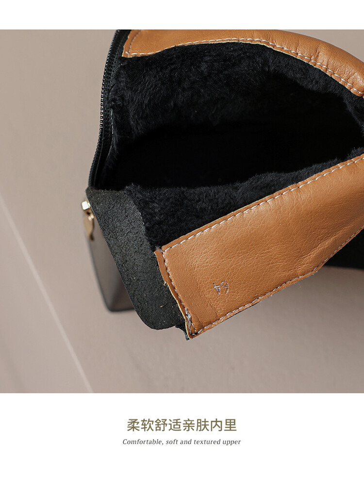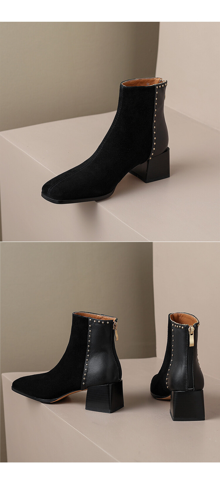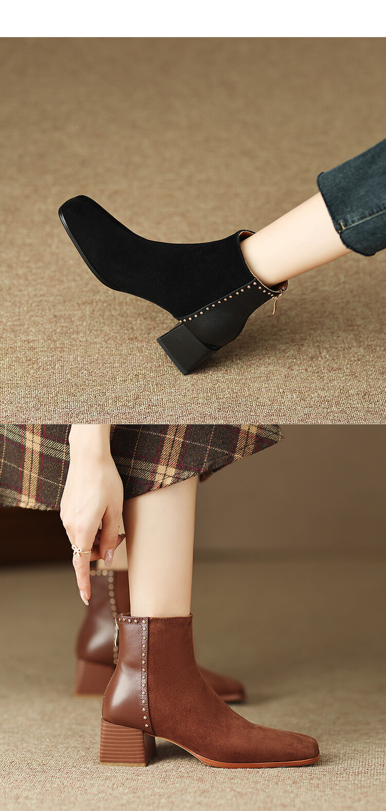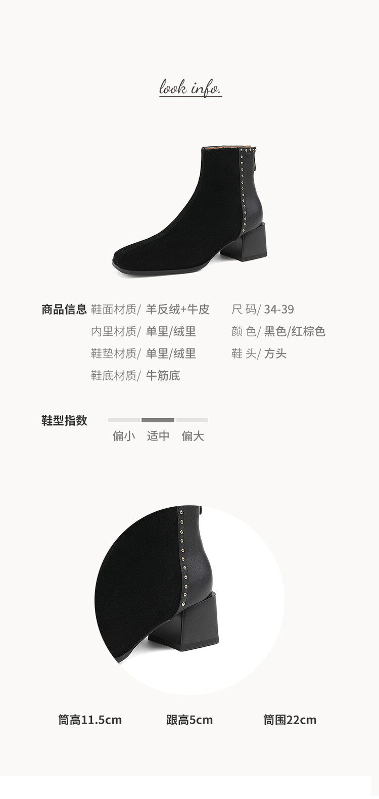 Ech&yolo牛皮+羊皮拼接时装复古及踝短靴HBP-1808