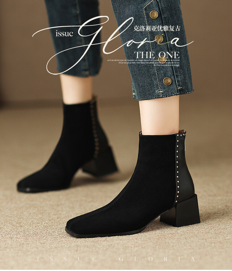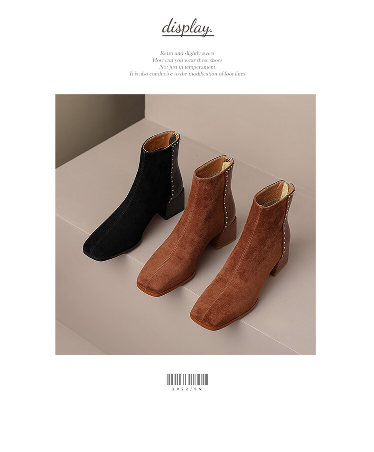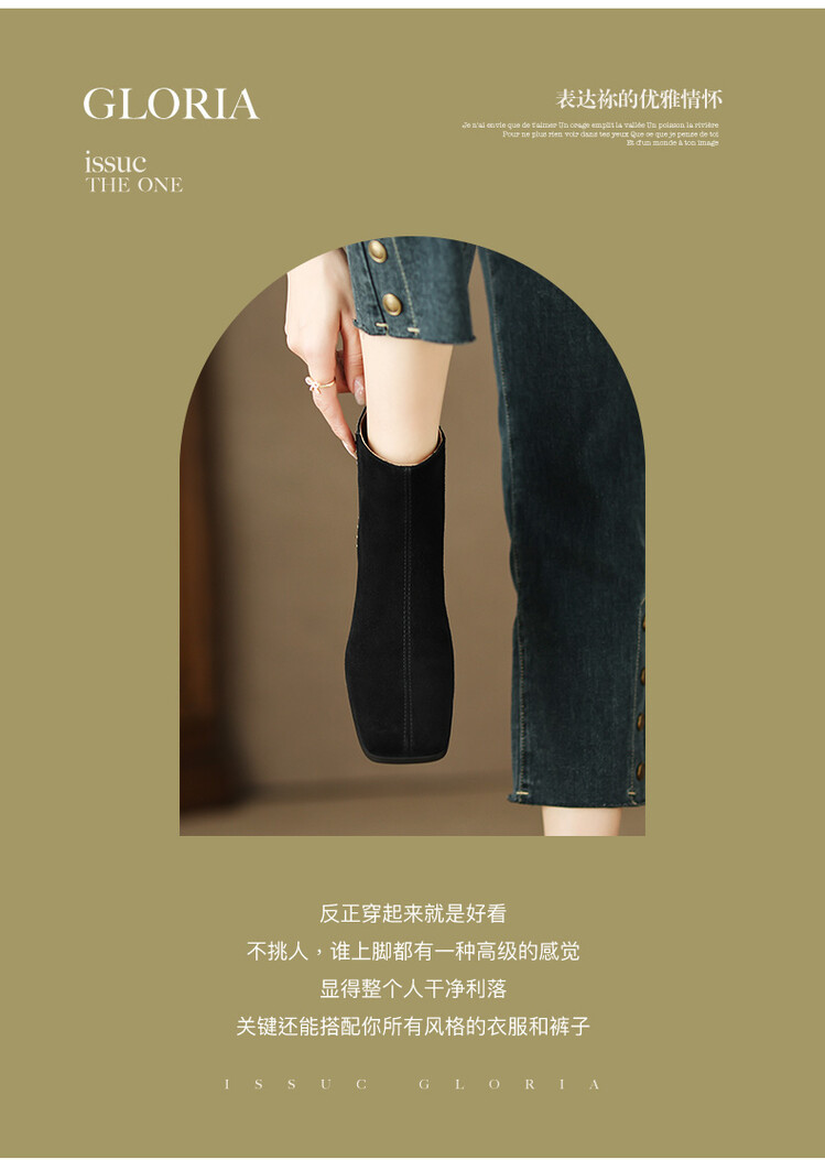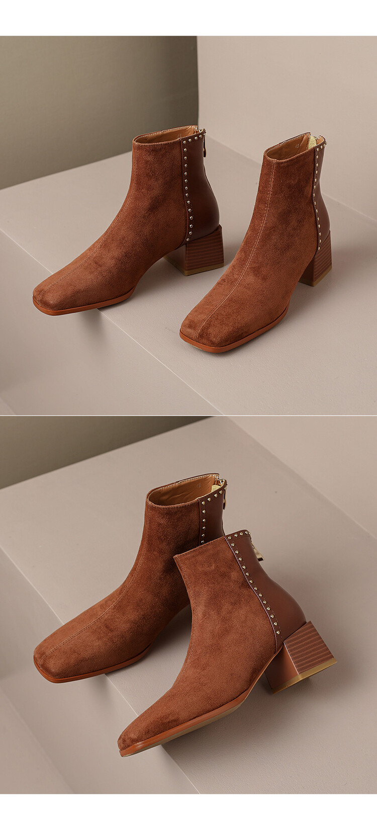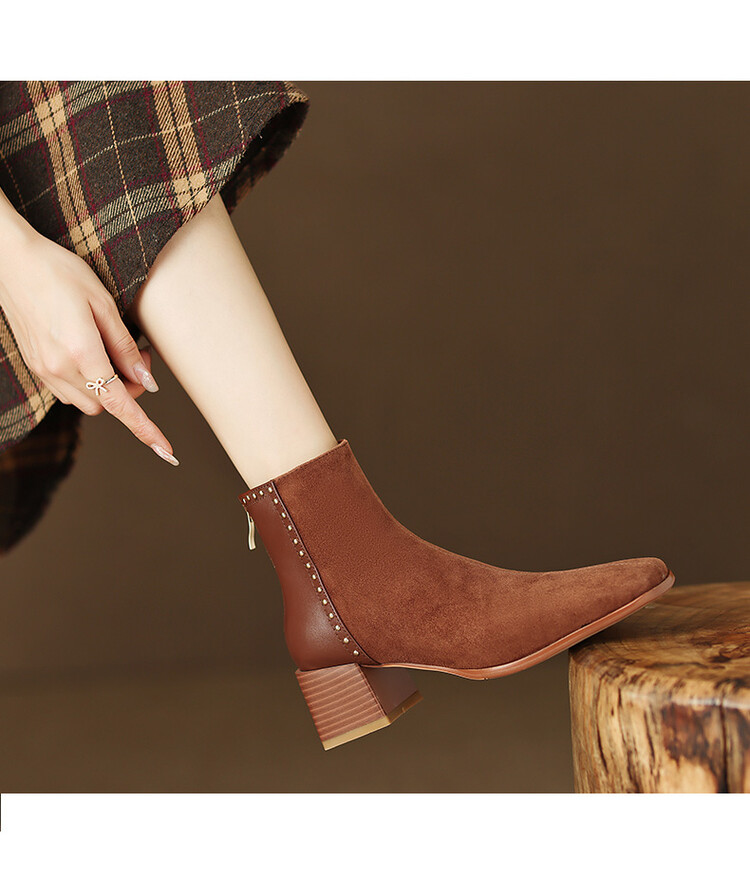 Ech&yolo牛皮+羊皮拼接时装复古及踝短靴HBP-1808
