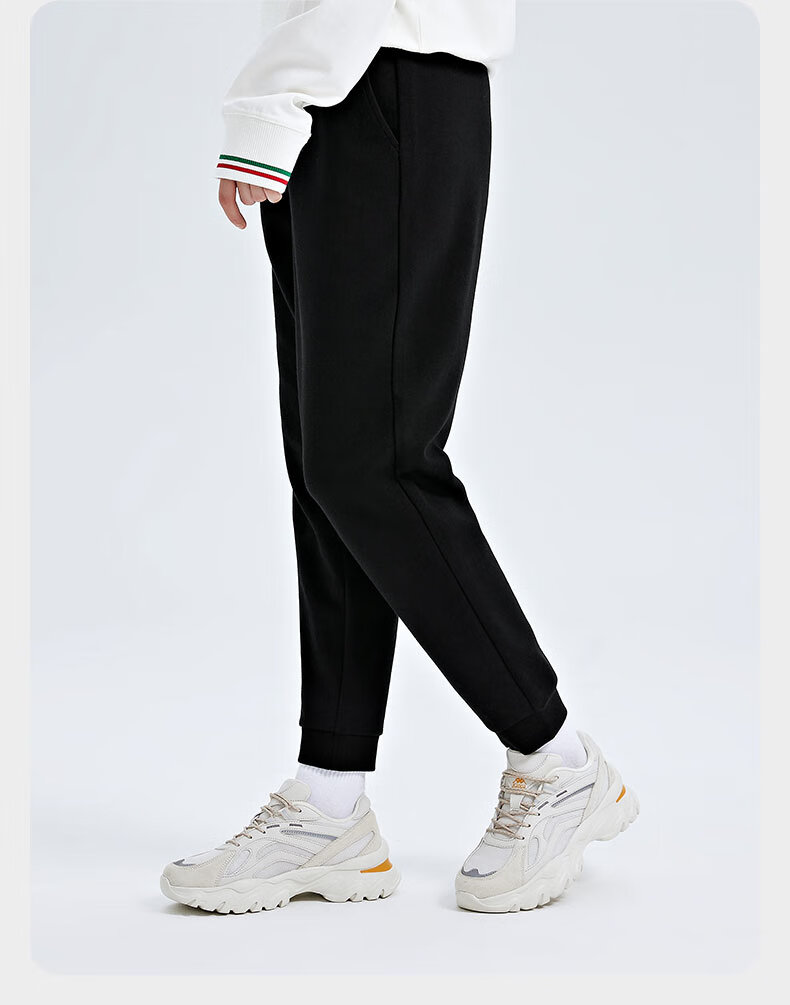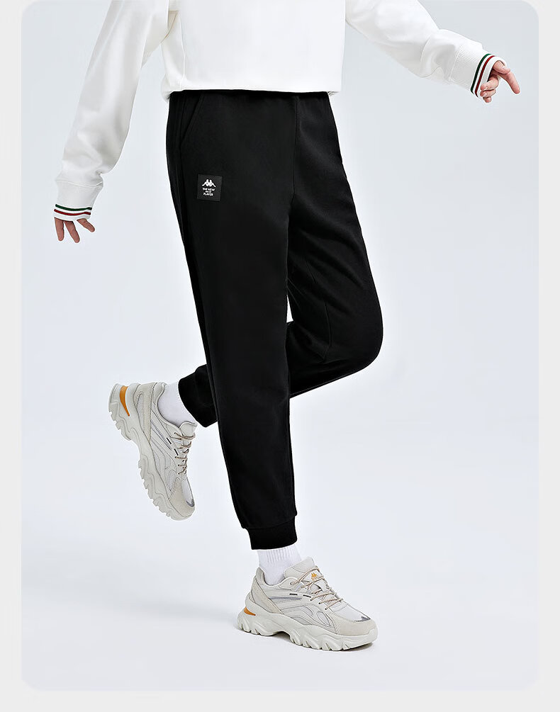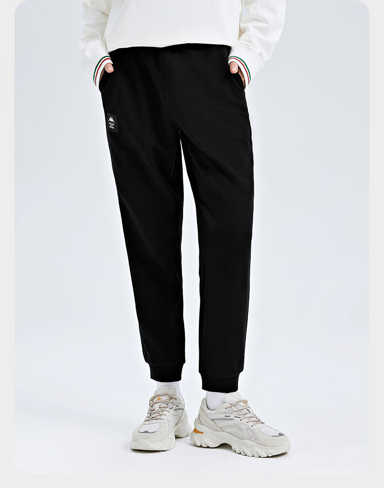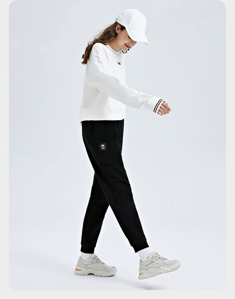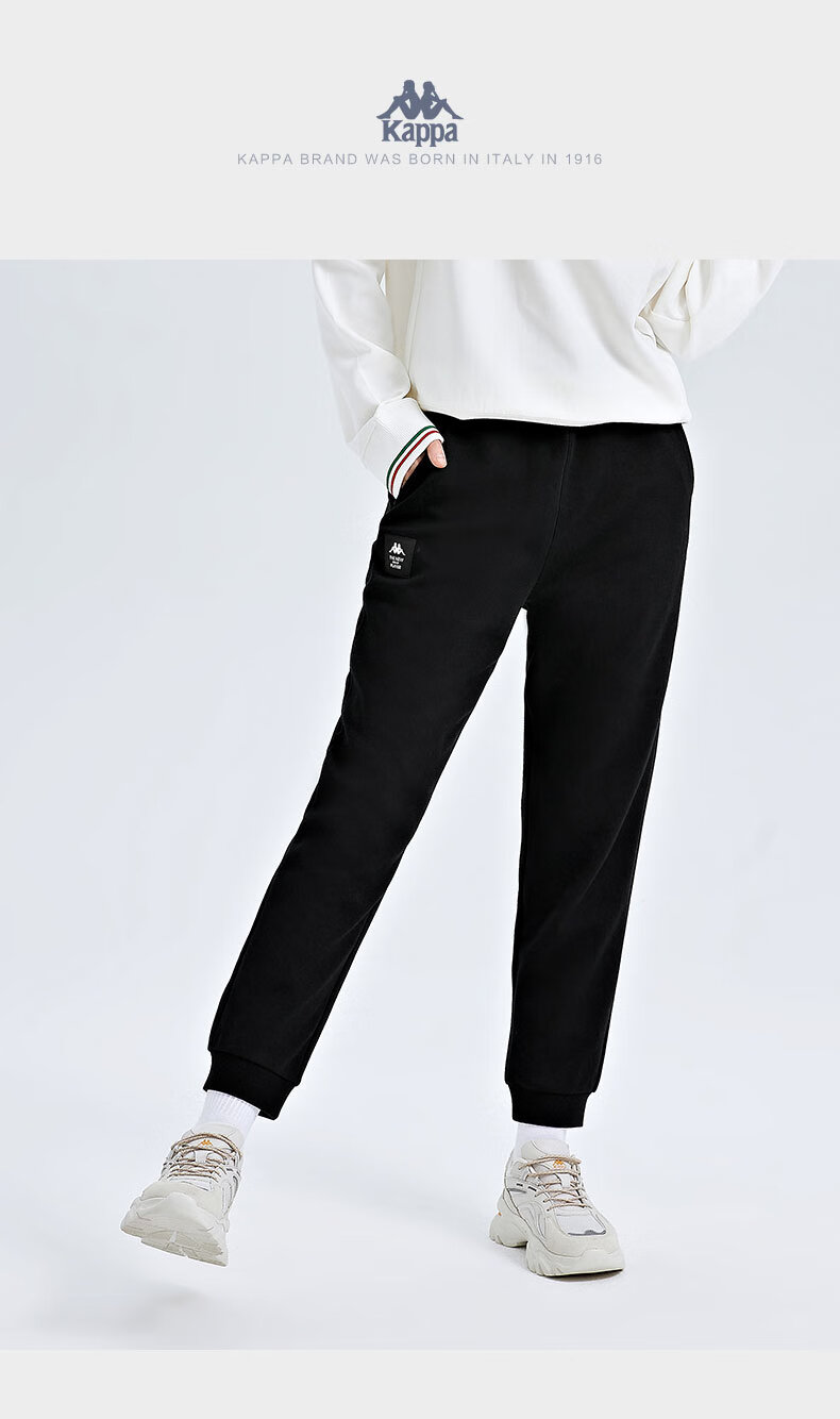 Kappa运动裤2022新款女针织长裤休闲裤黑色小脚卫裤K0C62AK61