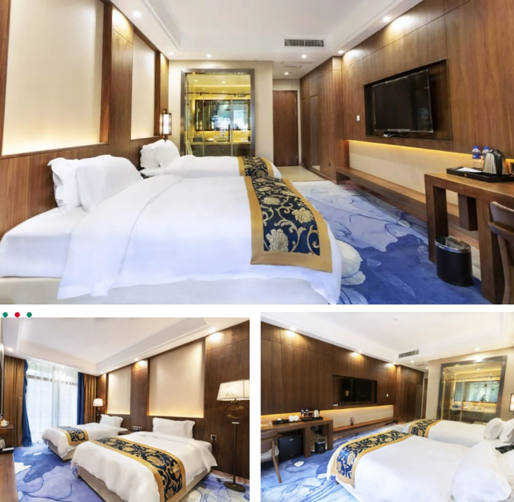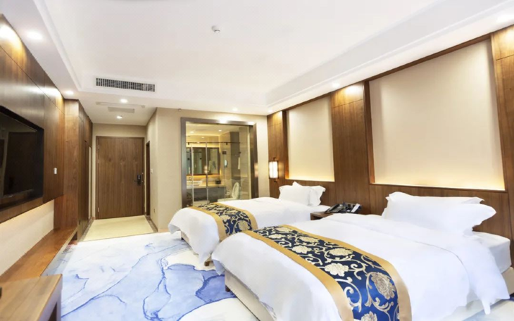 客房设计处处彰显用心。床铺干净整洁,床品软硬适中,躺卧其上,舒适惬意,助您一夜安睡,尽享高质量睡眠体验。