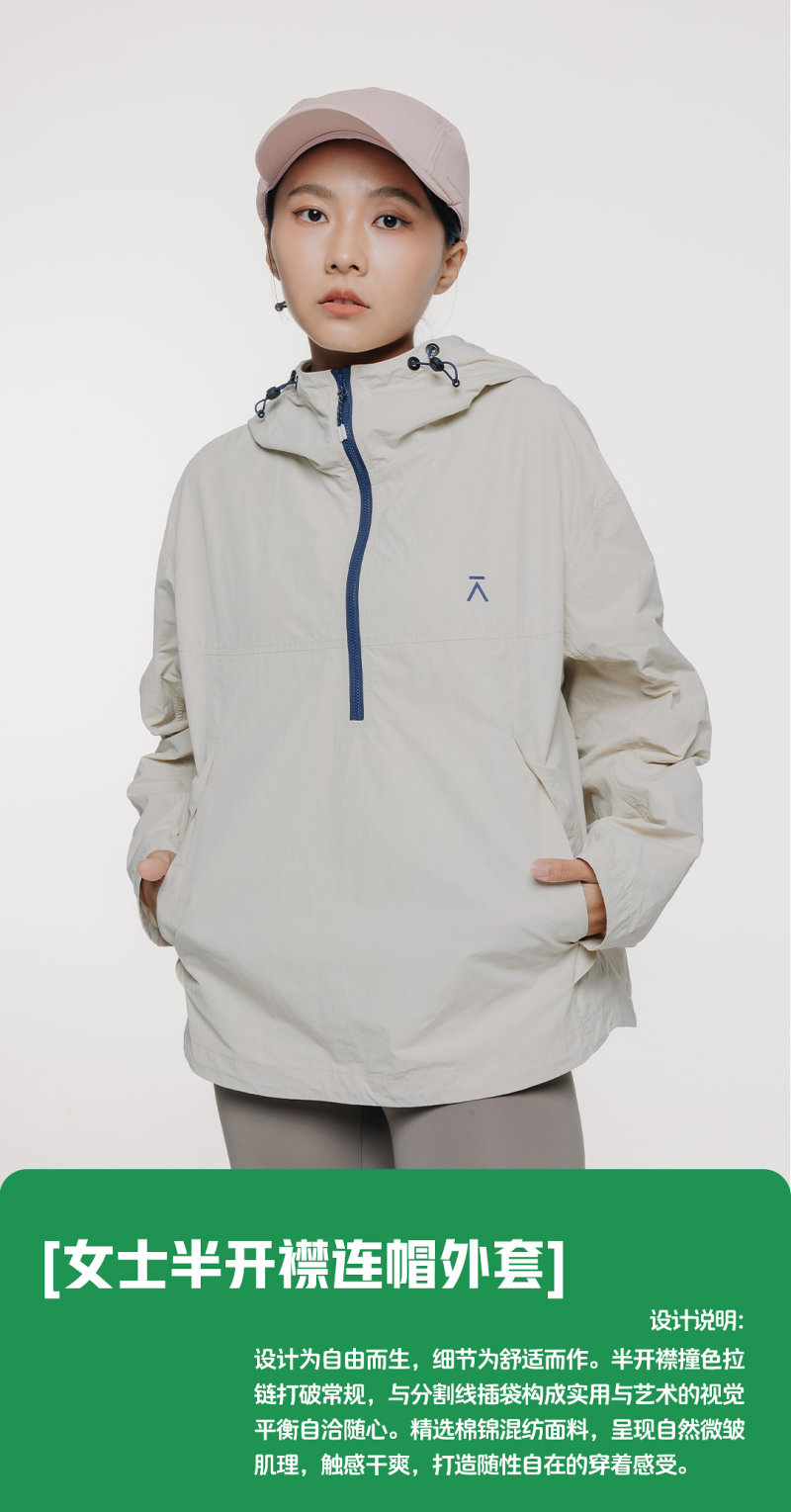 【出游季特惠】ACMEITEM爱棵米 户外 女士成人款半开襟连帽外套GAG2210482E