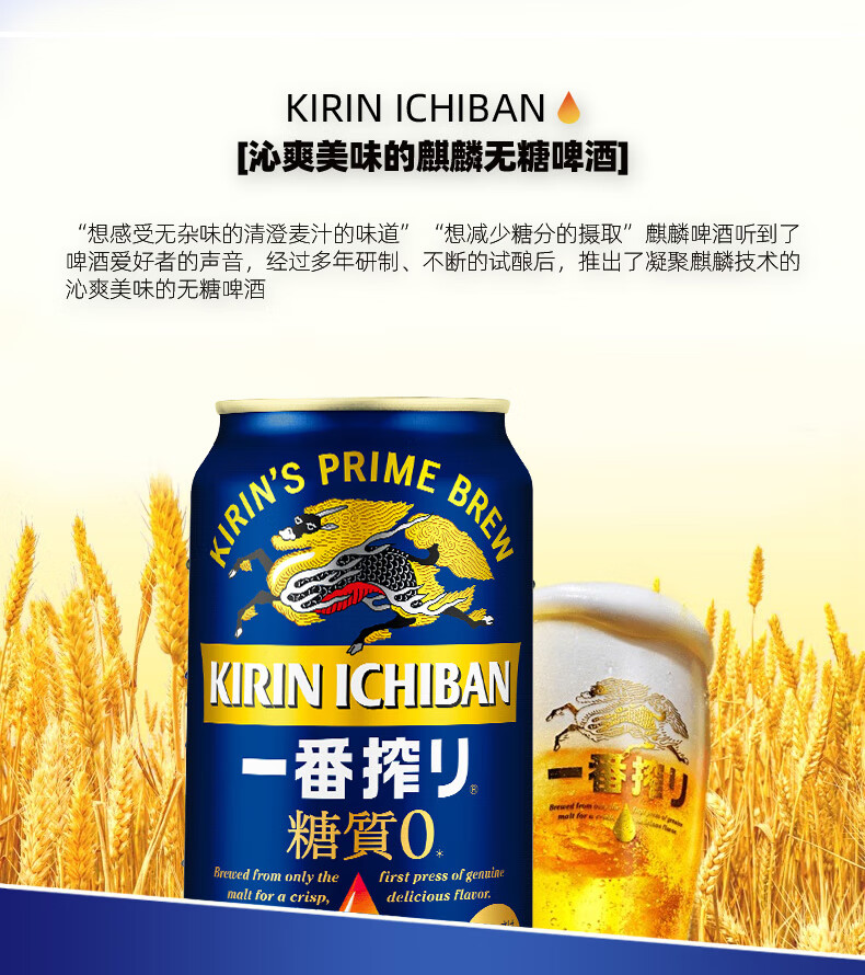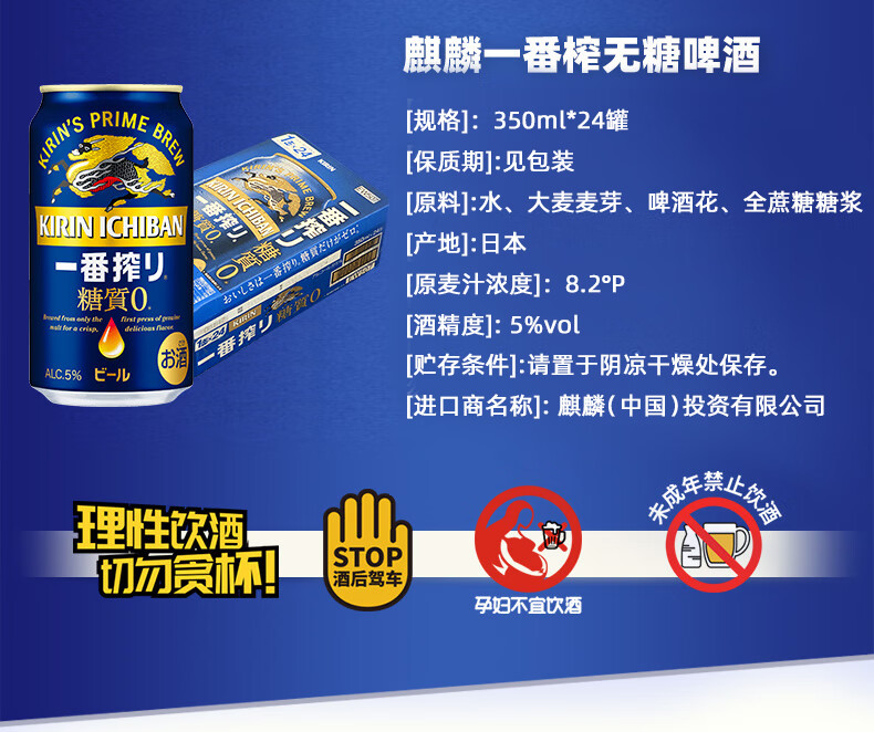 【最早到期日】KIRIN麒麟一番榨无糖日本进口 350ml/500ml*24罐/箱