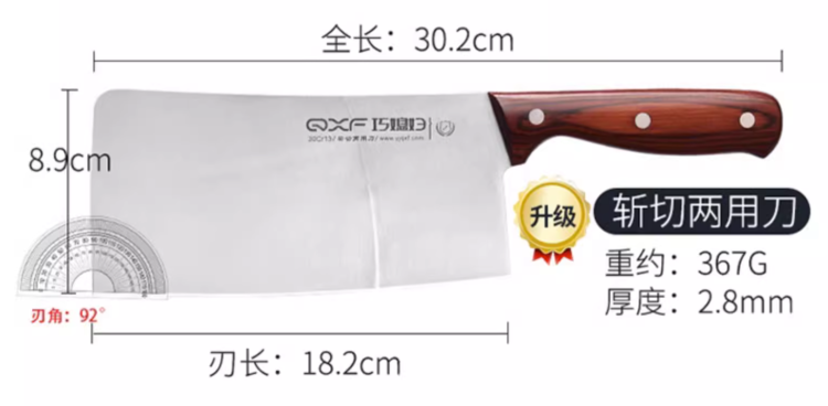 28年厨具品牌:2006被评为“中国刀剪十大知名品牌”(QXF 巧媳妇)!锋利好切,砍剁省力,不易生锈!质保1年!1年内断柄免费换新