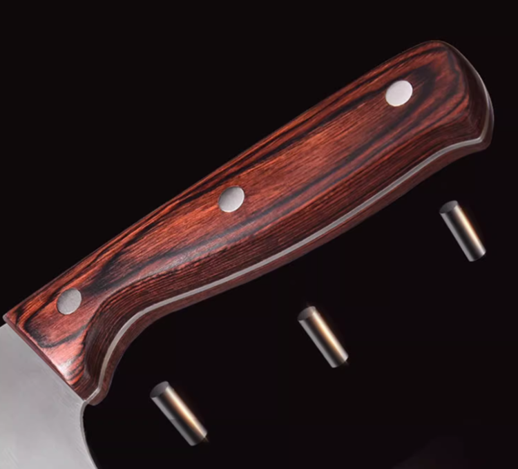 【成分】刀具主体材质:3铬13钢材(30Cr13),手柄材质:加固铆钉+彩木