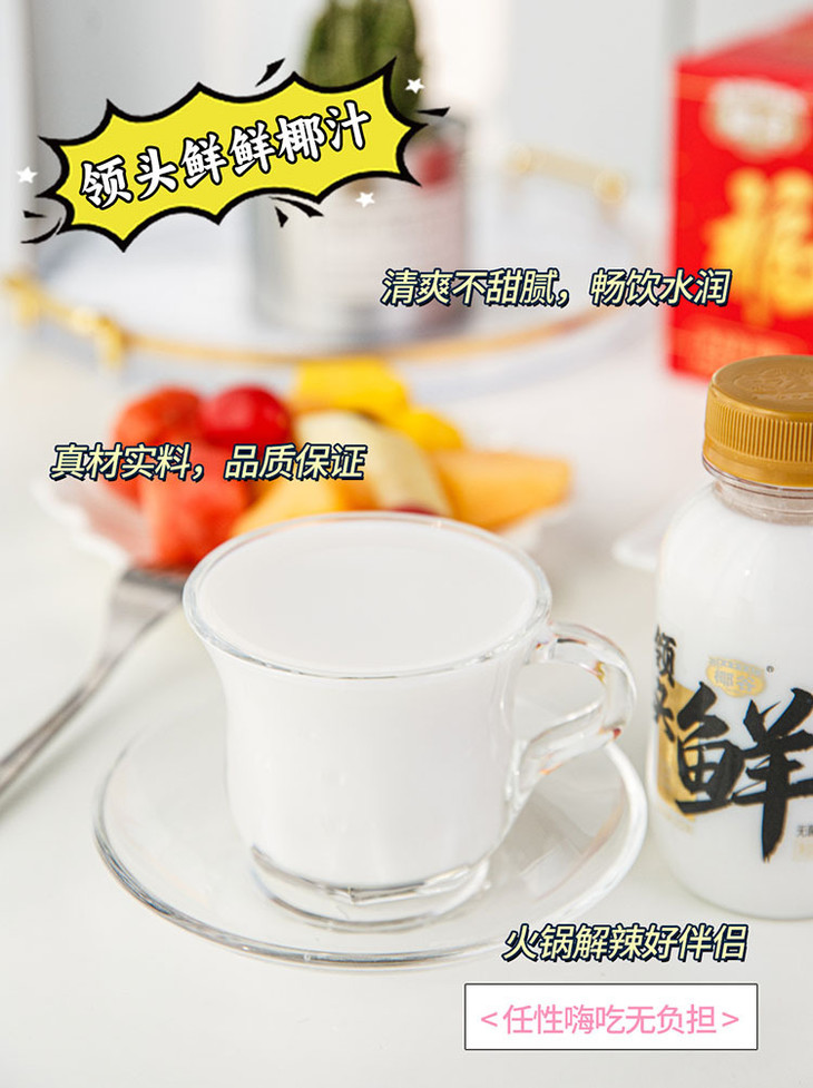 选料更好。 从越南,印度尼西亚等国进口的椰子皇作为原料 日常版天猫上要79.9元一箱!! 现仅需39.9元即可到手!而且还是非常适合送礼的新年礼盒版! 经2小时无菌鲜榨,选取头道鲜榨椰汁,浓醇美味 加入原生椰子水,鲜味更佳 天气慢慢回暖,好喝的鲜椰汁赶紧囤起来~